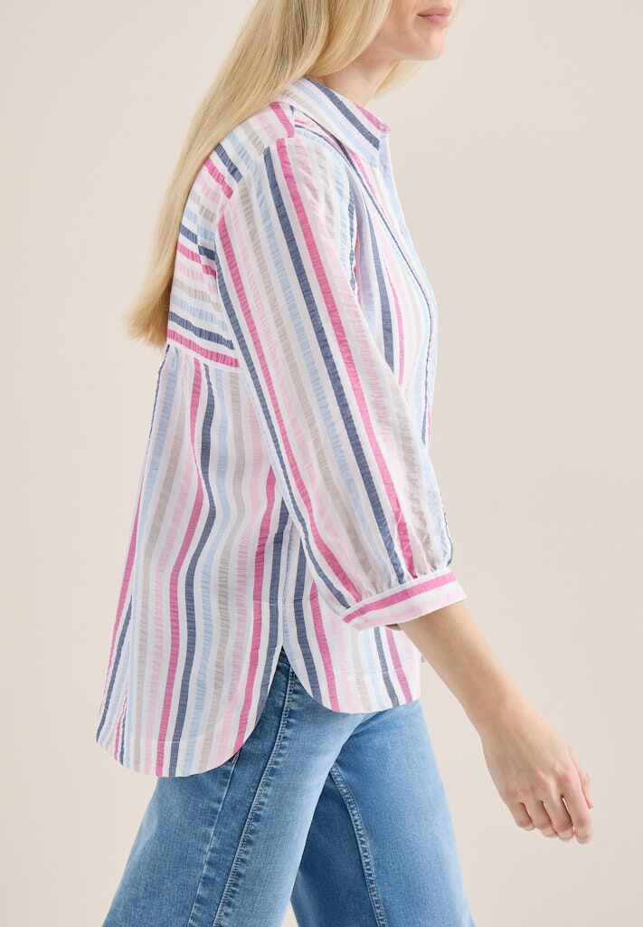 Diese Seersucker Hemdbluse von CECIL für Damen bringt mit ihrem Multicolor-Streifenmuster frische Akzente in deine Garderobe. Der Baumwollmix trägt sich angenehm luftig. Hemdkragen, Knopfleiste und 3/4-Ärmel verleihen der Bluse einen klassischen Stil. Der gerundete Saum sorgt für eine entspannte Silhouette. Damenbluse Casual Hemdkragen 3/4-Arm Multicolor Streifen Material: 65% Polyester, 35% Viskose