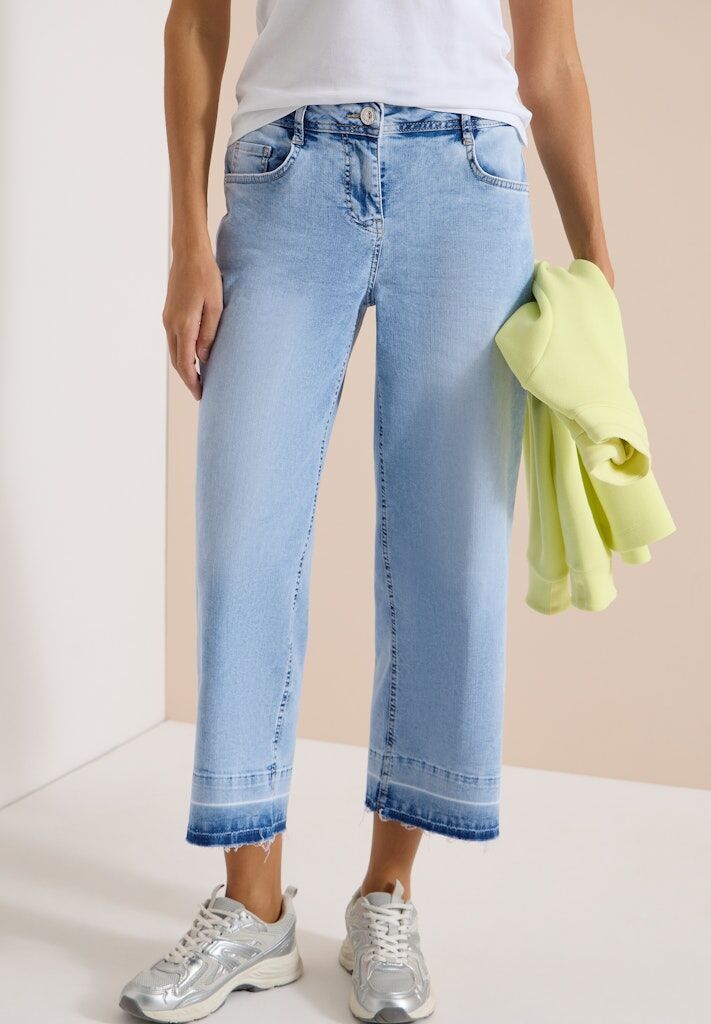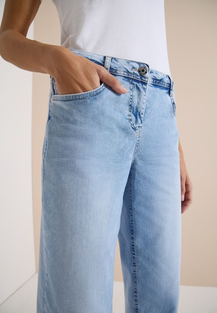Diese 7/8 Wide Leg Jeans von CECIL für Damen im Style Neele überzeugt mit lässigem Loose Fit und High Waist. Die Wide Legs sorgen für eine entspannte Silhouette, während der Ziersaum dem Denim eine besondere Note verleiht. Der 5-Pocket-Style und der Baumwollmix mit Stretchanteil machen die Jeans angenehm zu tragen. Ideal für dich, wenn du Denim mit modernem Detail suchst. Denim Hose Loose Fit Wide Legs High Waist Ziersaum Material: 77% Baumwolle, 20% Polyester, 3% Elasthan