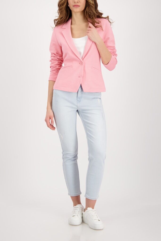 Dieser feminine Blazer von monari setzt mit seiner frischen rosa Farbe ein stilvolles Statement. Die taillierte Passform schmeichelt der Figur, während der klassische Reverskragen und die dezente Knopfleiste für einen eleganten Look sorgen. Ob im Büro oder in der Freizeit - dieser Blazer verleiht jedem Outfit eine moderne und zugleich edle Note.