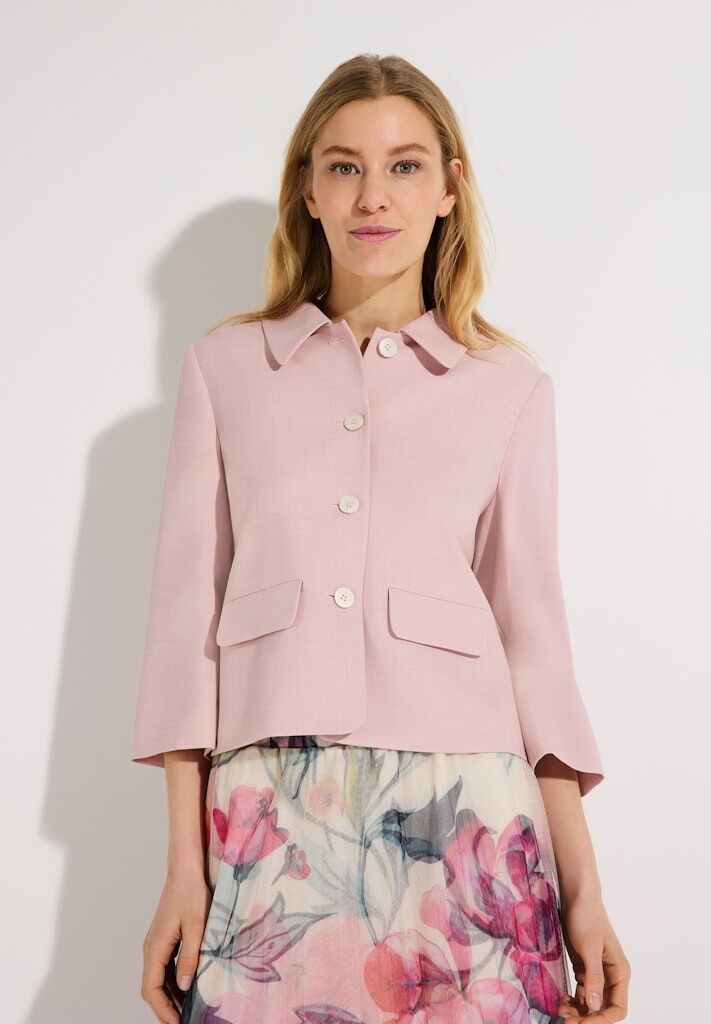 Die kurze Blazerjacke von MORE & MORE mit 3/4 langen Ärmeln ist ein stilvoller Begleiter für vielseitige Office- und Freizeitlooks. Sie kann mit passender Marlenehose zu einem sommerlichen Business-Outfit kombiniert werden, funktioniert aber genauso gut mit lässiger Jeans oder zu femininen Kleidern und Röcken.