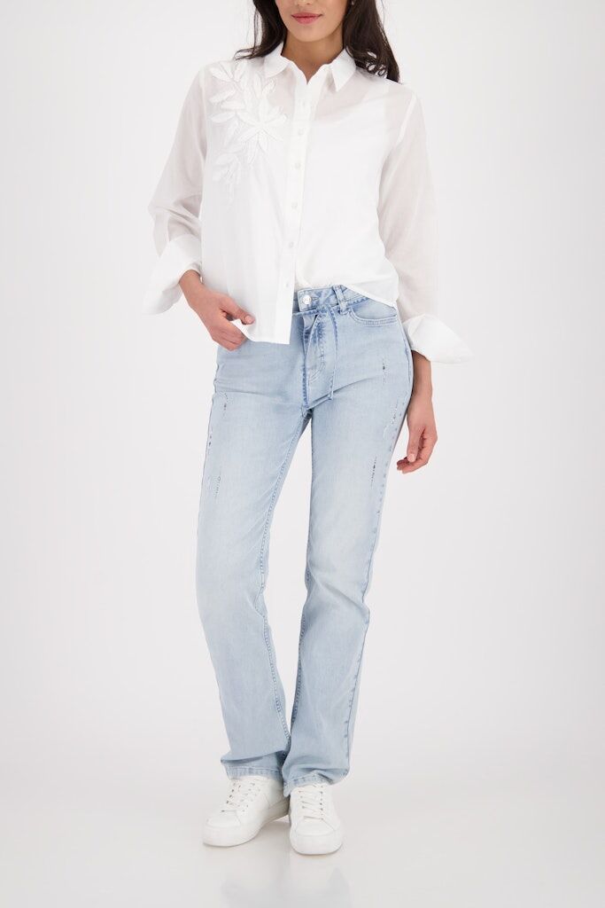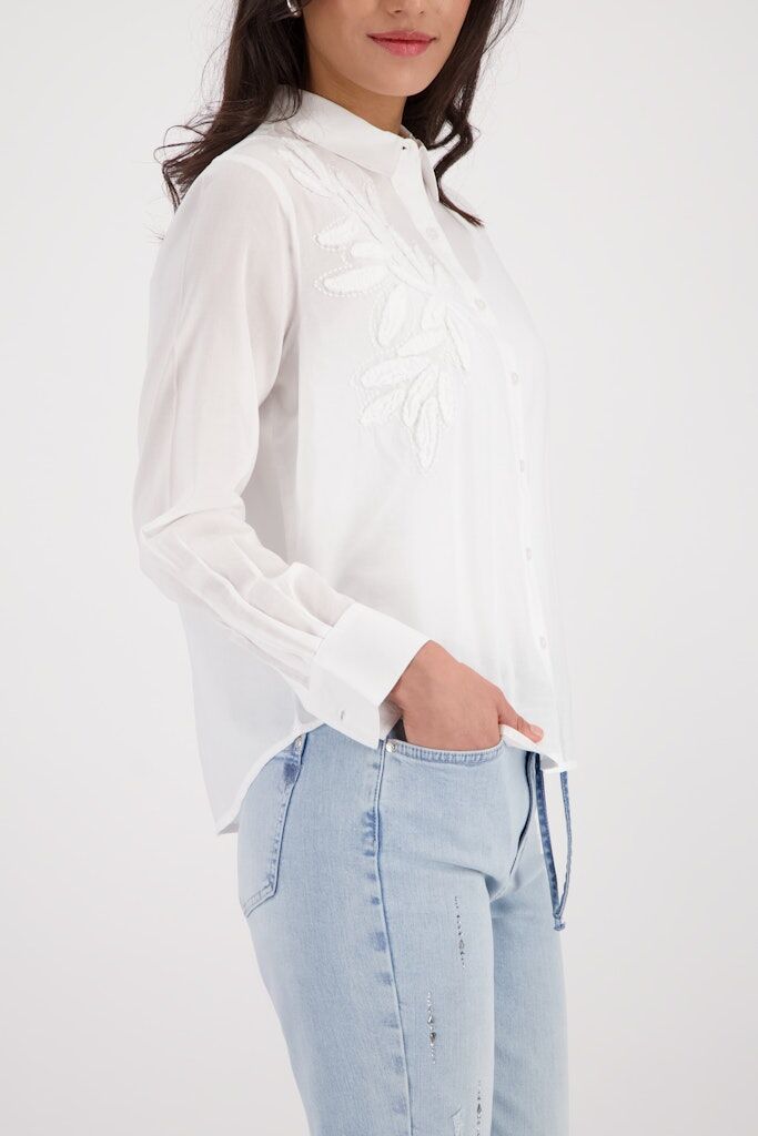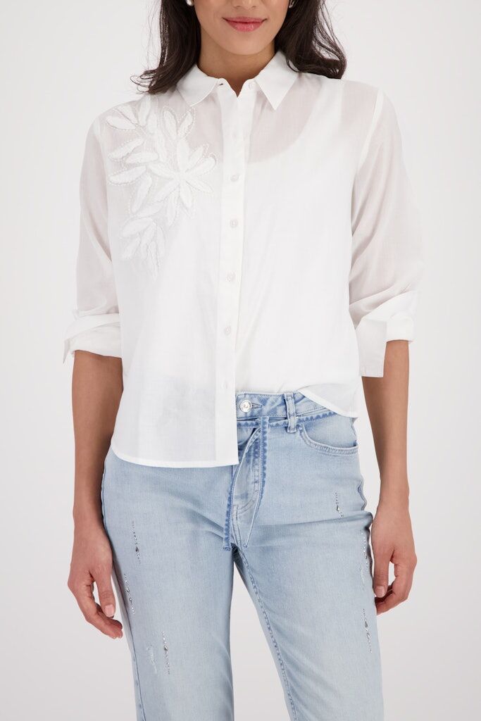 Elegante Bluse aus einer hochwertigen Baumwollmischung mit Modal, verziert mit Blütenapplikationen, für einen stilvollen und modernen Look.
