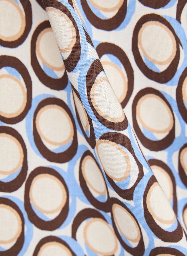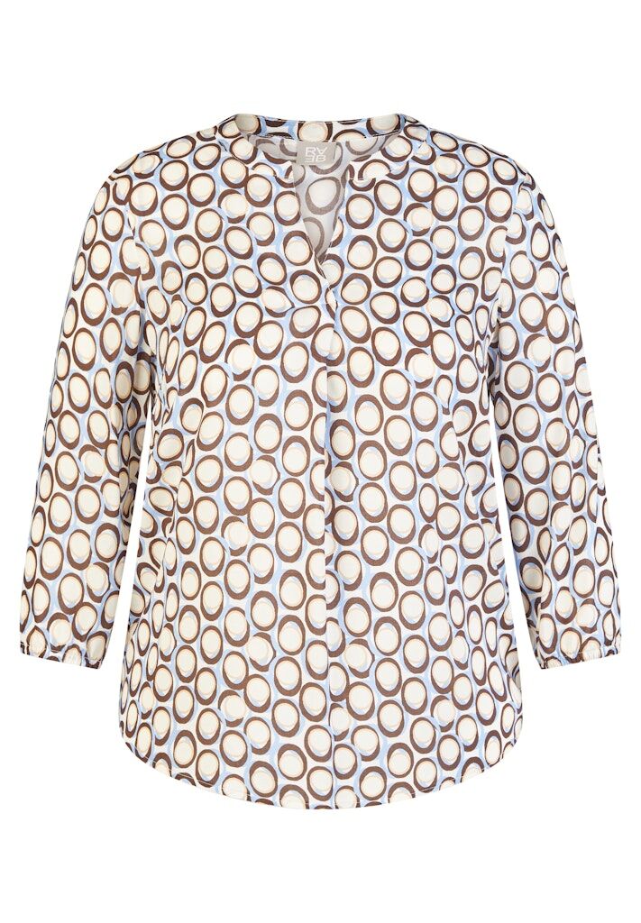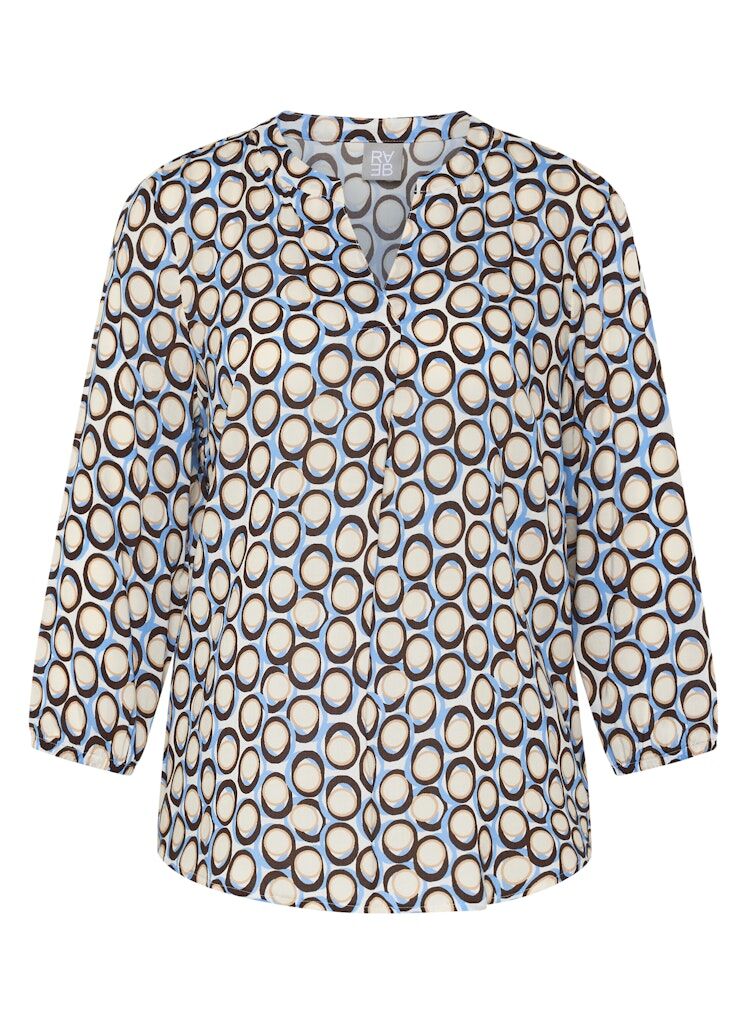 Diese Bluse aus reiner Viskose überzeugt mit ihrer weich fließenden Qualität und einem angenehm leichten Tragegefühl. Der offene V-Ausschnitt verleiht dem Modell eine feminine Note, während die 3/4-Ärmel für eine lässig-elegante Silhouette sorgen. Das grafische Ringdessin setzt einen modernen Akzent und macht die Bluse vielseitig kombinierbar _ von casual bis gepflegt. Reine Viskose. Fließende, leichte Qualität. Offener V-Ausschnitt. 3/4-Ärmel. Grafisches Ringdessin.