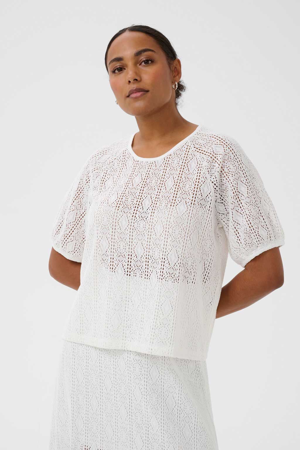 Die Bluse "Donna" von Kaffe überzeugt mit ihrer puristischen Eleganz und einer modernen, strukturierten Oberfläche. In klassischem Weiß gehalten, lässt sie sich vielseitig kombinieren und passt sowohl zu eleganten als auch zu lässigen Looks. Der lockere Schnitt und der angenehme Stoff sorgen für hohen Tragekomfort, während feine Details wie der dezente Verschluss im Nacken das Design stilvoll abrunden.