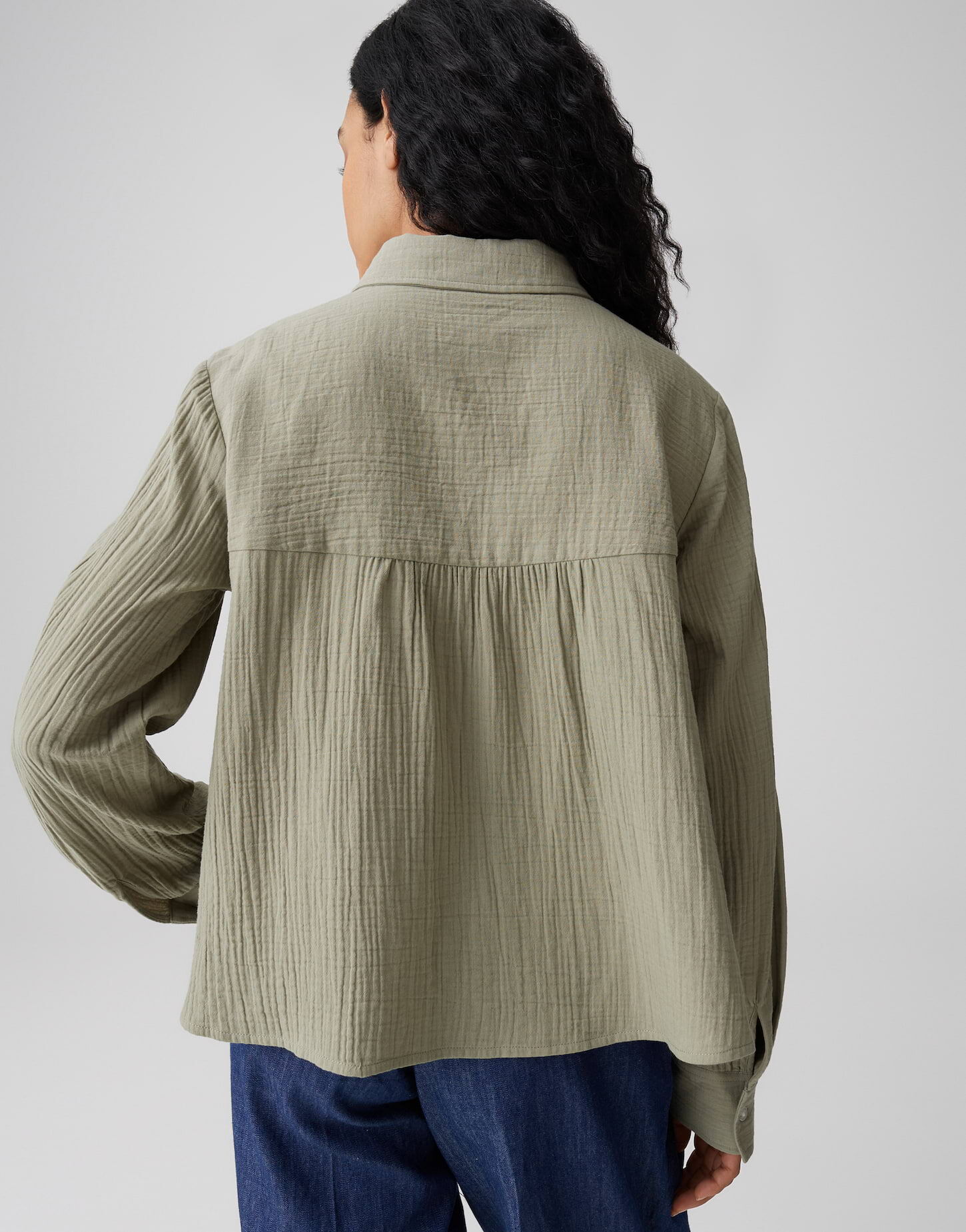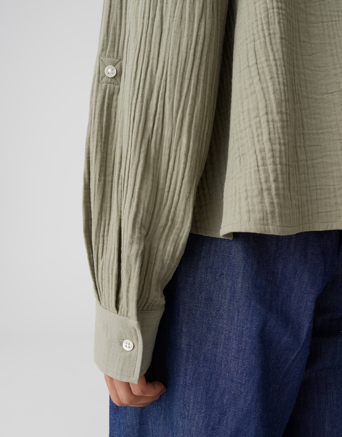 - Details/ Besonderheiten: Aufgesetzte Brusttaschen, durchgehende Knopfleiste mit Perlmuttknöpfen, Ärmelriegel zum Aufschlagen, kleine Falten unter der Rückenpasse, strukturierter Stoff, leicht ausgestellter Schnitt