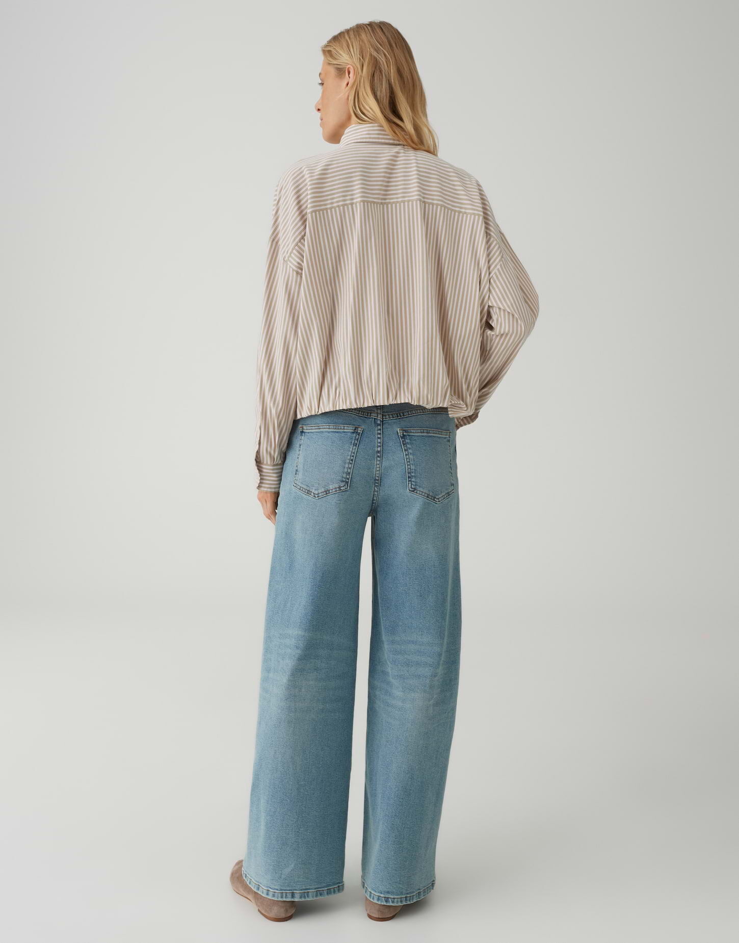 - Details: Überschnittene Schultern, aufgesetzte Brusttasche, geraffter Ballon-Saum, durchgehende Knopfleiste, Rückenlänge ca. 54,5 cm bei Größe 36