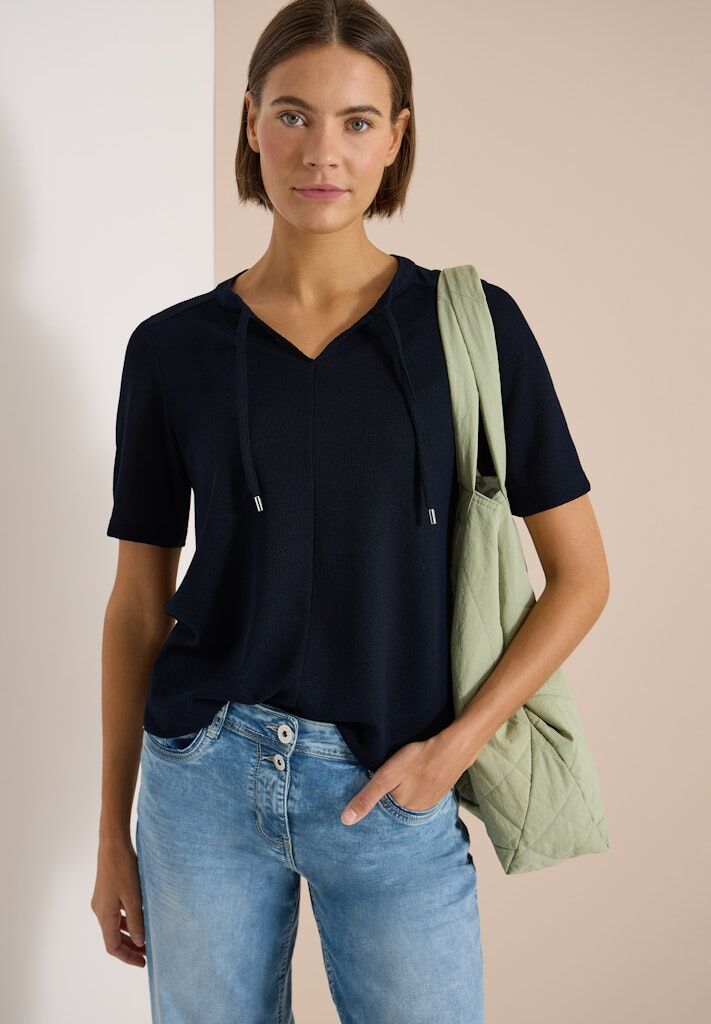 Dieses Shirt im Tunika-Look von CECIL für Damen überzeugt durch seinen spannenden Strukturmix. Der Split Neck mit Bändern unterstreicht die feminine Ausstrahlung, während die Vorderseite im Strick-Look einen besonderen Akzent setzt. Die Rückseite aus bequemer Jersey-Qualität und seitliche Schlitze im Saum sorgen für hohen Tragekomfort. Ideal für dich, wenn du ein schlichtes und vielseitiges Shirt mit besonderen Details suchst. Strukturmix Shirt Casual Split Neck mit Bändern Kurzarm Schlicht und vielseitig Material: 60% Viskose, 40% Polyester