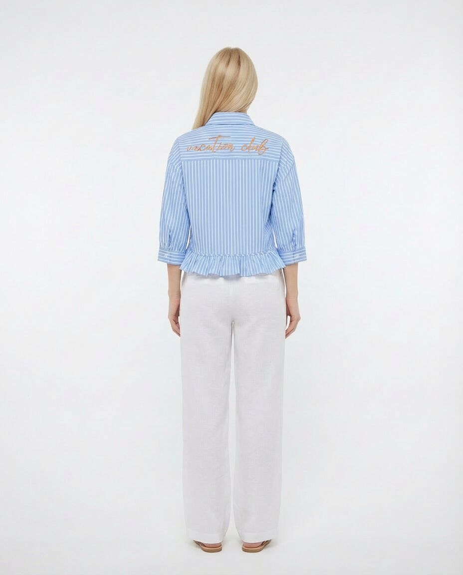 - Details: Knopfleiste, Brusttasche, Schößchensaum, Stickerei "Vacation Club" auf dem Rücken