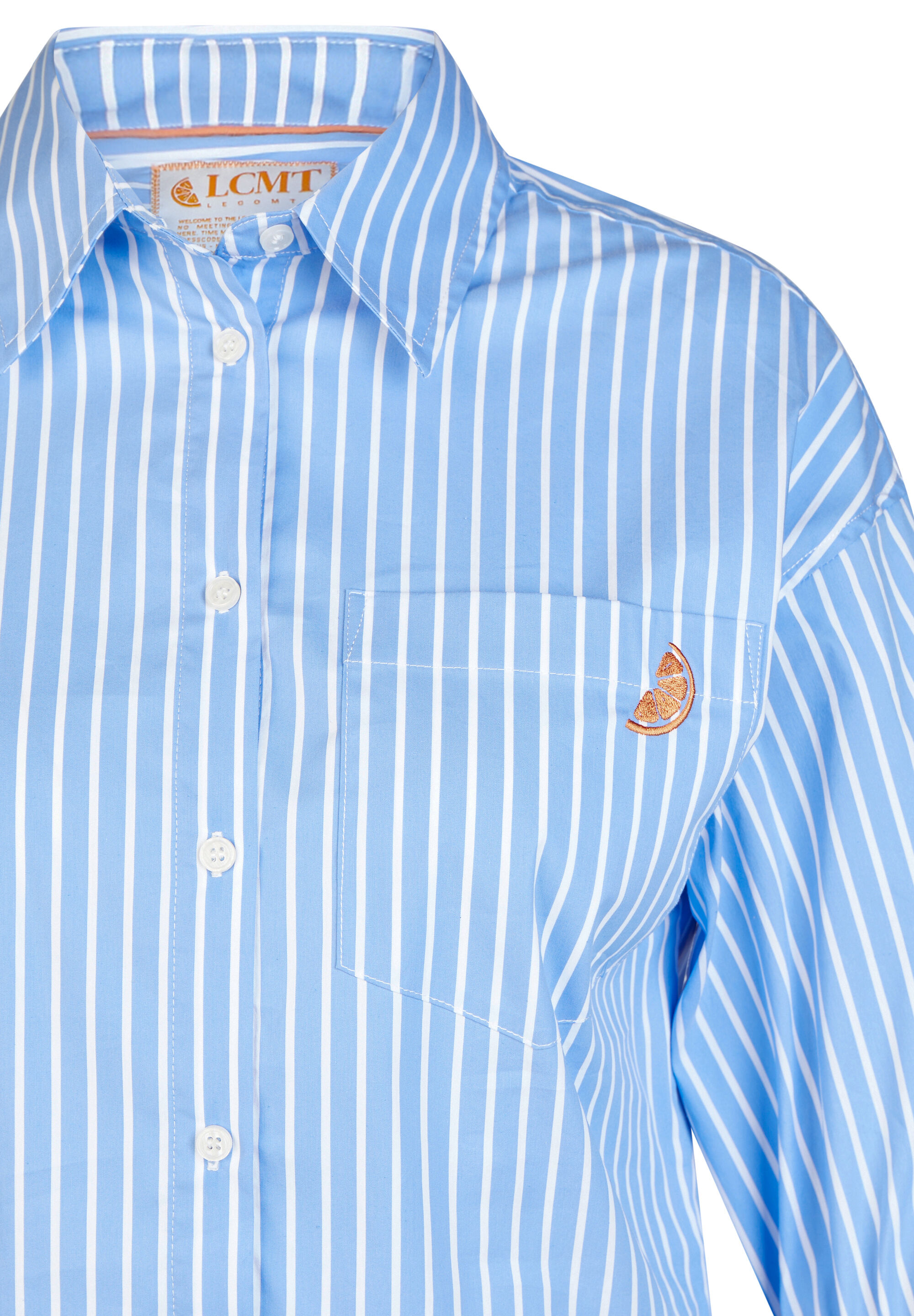 Diese stilvolle Bluse von LeComte in zartem Puderblau vereint klassische Eleganz mit verspielten Details. Das feine Streifenmuster sorgt für einen zeitlosen Look, während der feminine Schnitt mit leichtem Schößchen die Silhouette charmant betont. Hochwertige Materialien und liebevolle Akzente wie die Stickerei auf dem Rücken und die Brusttasche machen dieses Modell zu einem echten Hingucker - perfekt für frische, moderne Outfits mit einem Hauch von Leichtigkeit.