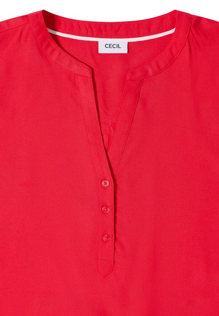 Diese Tunika von CECIL für Damen überzeugt mit schlichter Optik und vielseitiger Kombinierbarkeit. Die fließende Viskose trägt sich angenehm leicht. Split Neck, kurze Ärmel und eine dekorative Knopfleiste setzen dezente Akzente. Der elastische Saum sorgt für einen bequemen Sitz. Viskosebluse Casual Split Neck Kurzarm Schlicht und vielseitig Material: 100% Viskose