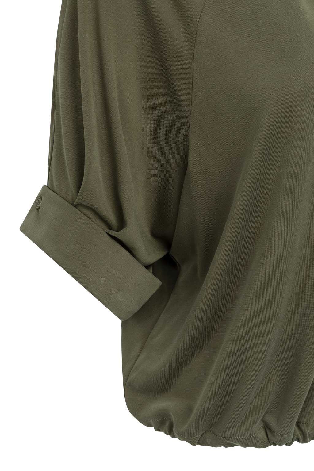 - Details: Elastischer Saum mit Bindeband, umgeschlagene Ärmel, V-Ausschnitt, lockerer Fall, moderne Silhouette