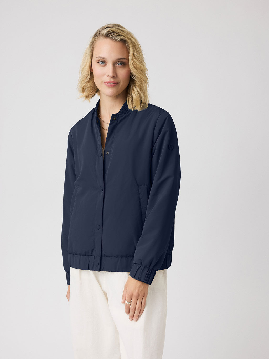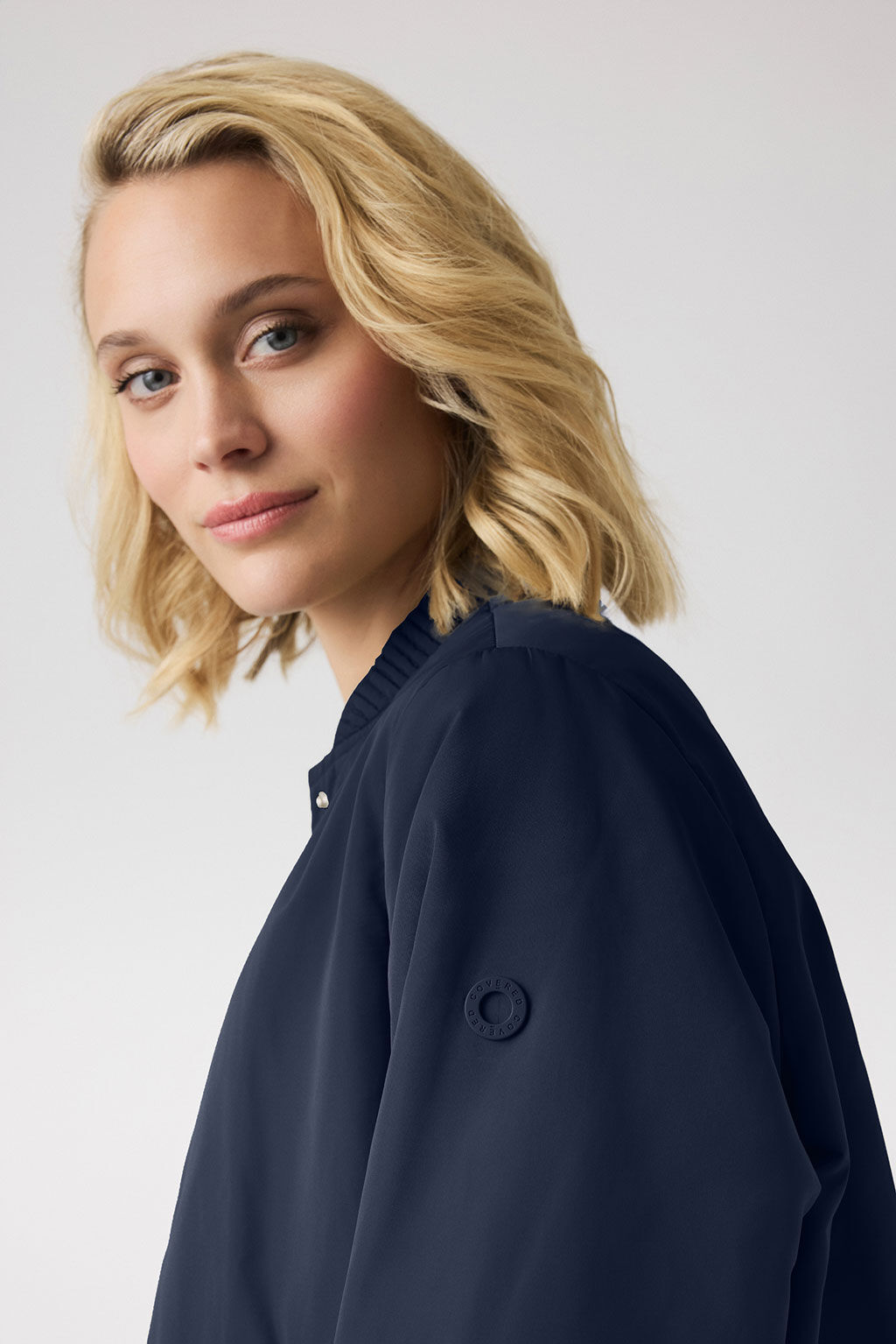 - Details: Druckknopfverschluss, Rippkragen, elastische Rippbündchen an Ärmeln und Saum, seitliche Eingrifftaschen