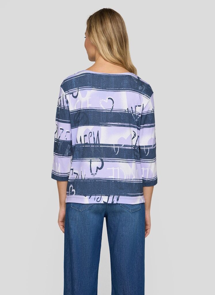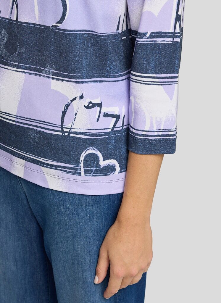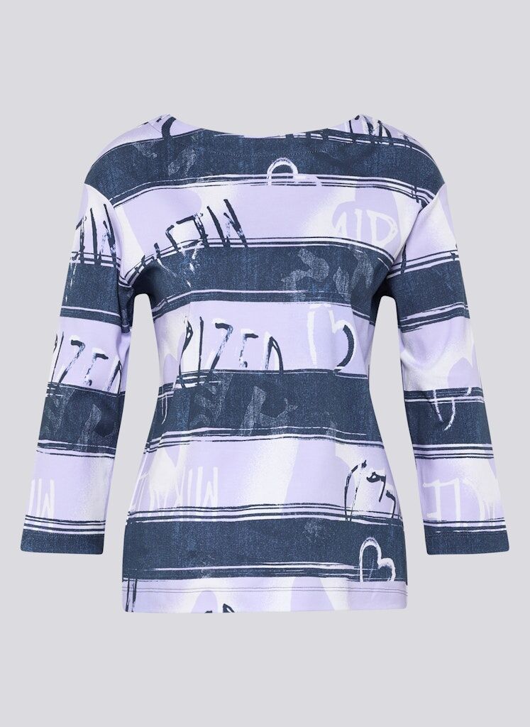 Dieses Shirt kombiniert sportive Lässigkeit mit einem ausdrucksstarken Design. Breite Querstreifen in gedeckten Tönen sorgen zusammen mit abstrakten Elementen für einen modernen Look. Der U-Boot-Ausschnitt und der 3/4-Arm unterstreichen die legere Silhouette, während das weiche Baumwollmaterial für ein angenehmes Tragegefühl sorgt. Perfekt zu Jeans oder unifarbenen Hosen. 3/4-lange Ärmel. Breite Streifen mit Print. Reine Baumwolle.