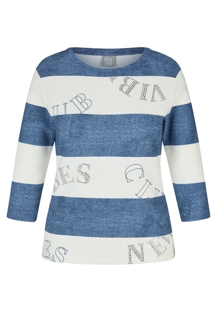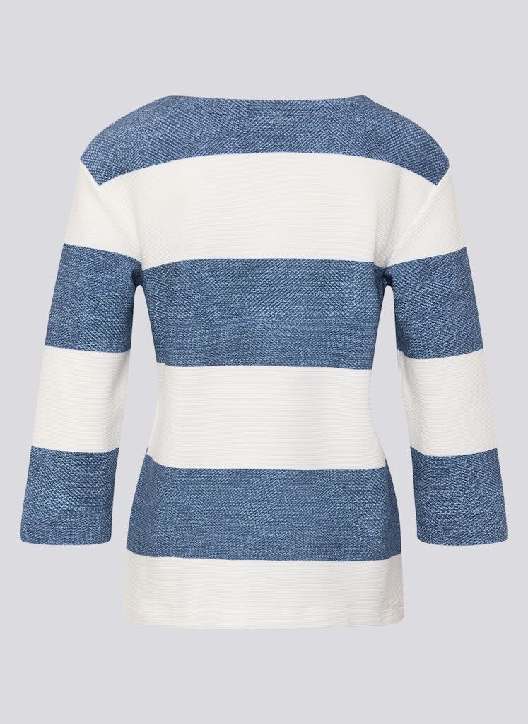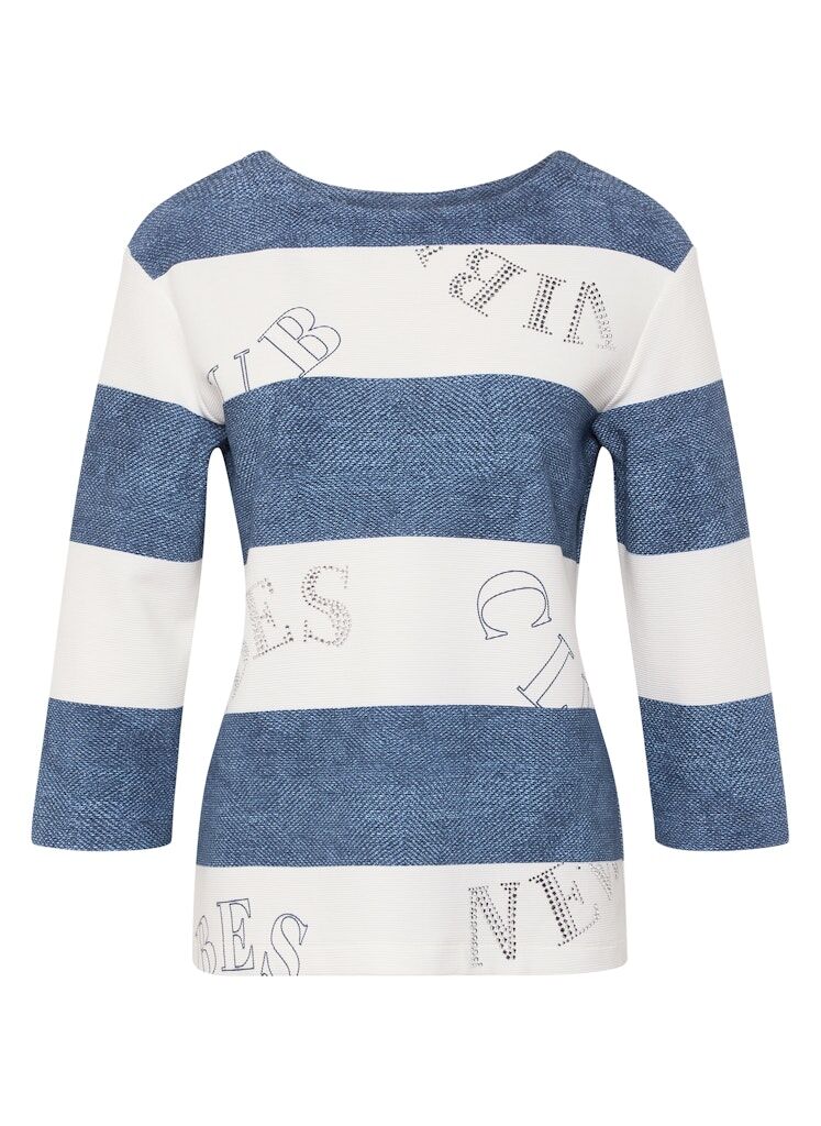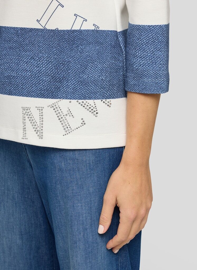 Dieses Shirt mit breiten Streifen sorgt für einen modernen Look. Der gerade Schnitt mit 3/4-Ärmeln und der leicht ausgestellte U-Boot-Ausschnitt schmeichelt der Silhouette. Strassbesetzte Buchstaben setzen auf der Vorderseite modische Akzente. Die angenehme Baumwollmischung bietet optimalen Tragekomfort und bleibt formstabil. Ein vielseitiges Oberteil für gepflegte Casual-Styles. U-Boot-Ausschnitt mit Strassdetails. Breite Querstreifen in Kontrastoptik. Angenehmes Baumwollmischgewebe. 3/4-lange Ärmel mit geradem Abschluss. Hochwertige Markenverarbeitung.