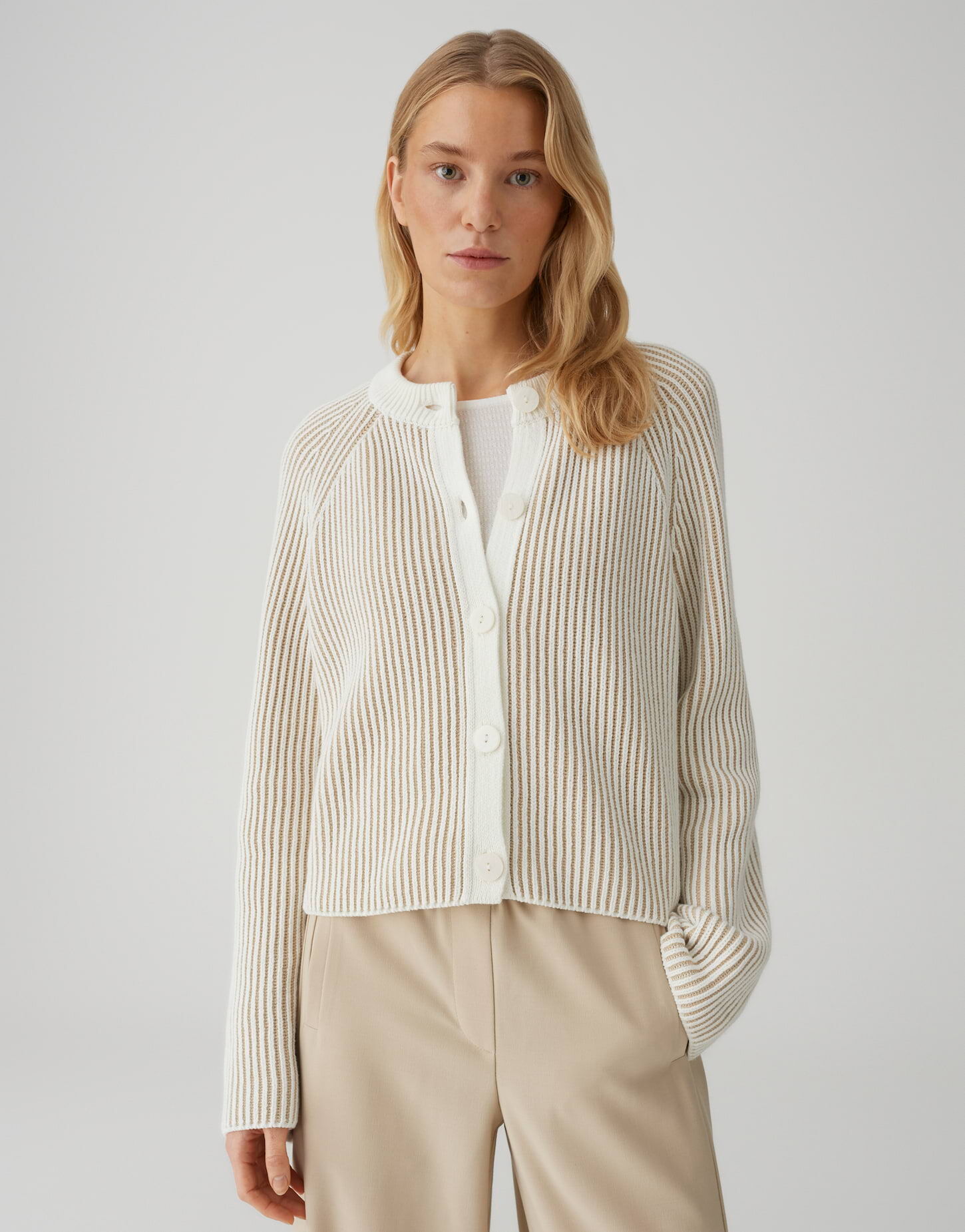 Die Strickjacke "Delsie" von Opus ist ein stilvoller Begleiter für gemütliche Tage und moderne Layering-Looks. Mit ihrer lockeren Passform, dem geraden Schnitt und der verkürzten Länge wirkt sie zugleich lässig und feminin. Die feine Rippstruktur in zweifarbiger Optik verleiht dem soften Strick eine lebendige Tiefe, während farblich abgesetzte Strickbündchen und Raglanärmel modische Akzente setzen. Ein Must-have mit Wohlfühlfaktor - perfekt für kühle Tage.