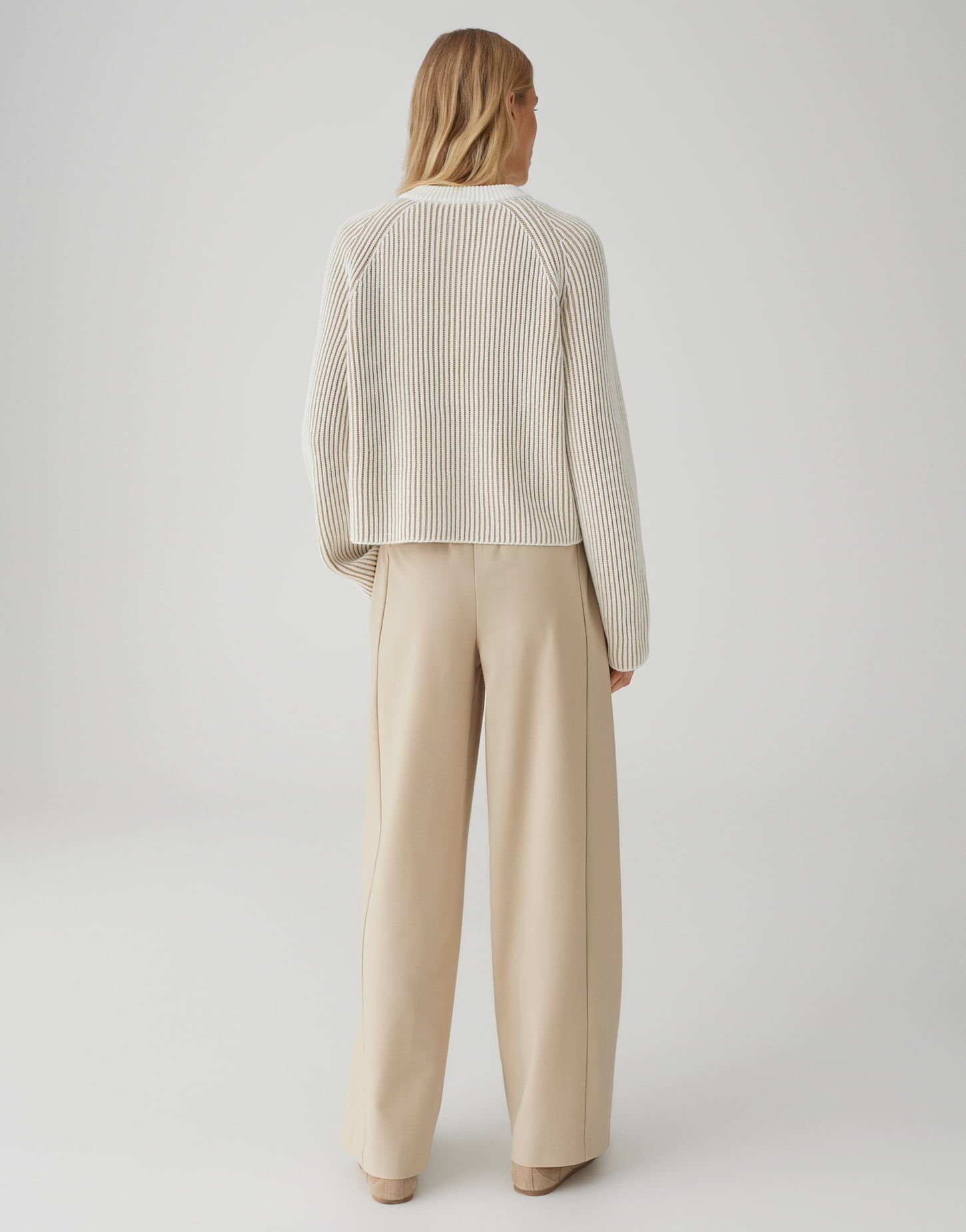 - Materialeigenschaften: Strick, Rippstruktur, weicher Griff, wärmend
