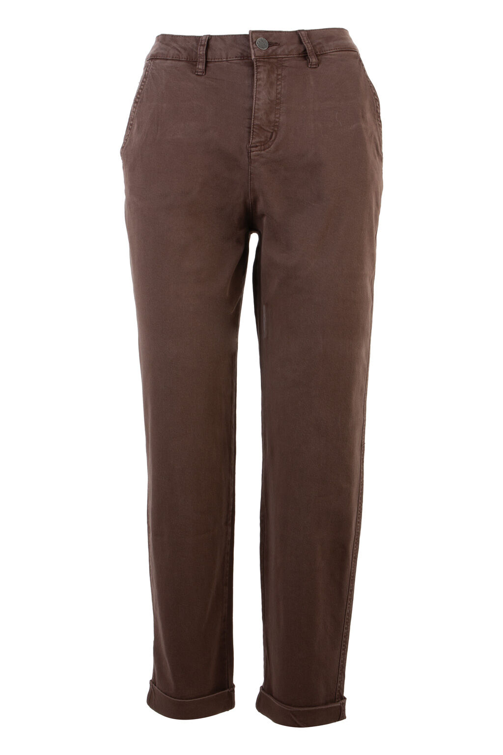 - Details: Knopf- und Reißverschluss, Gürtelschlaufen, seitliche Eingrifftaschen, umgeschlagene Beinabschlüsse