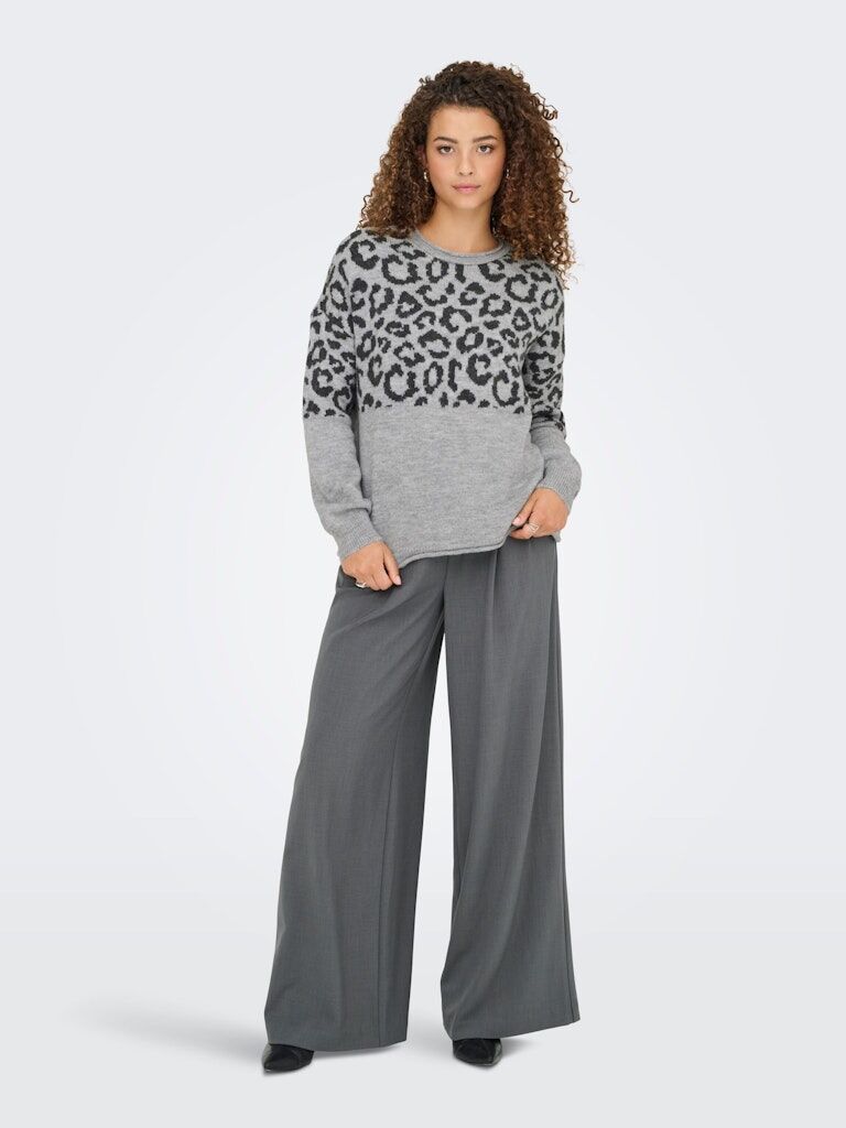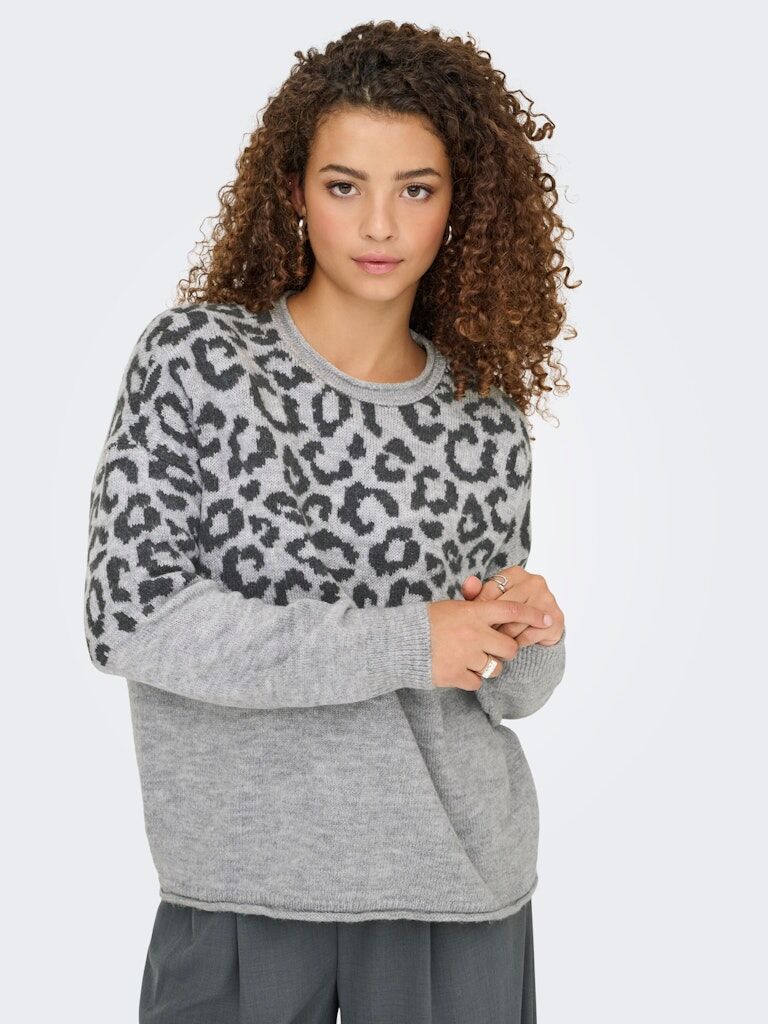Mit dem Pullover von ONLY ziehst du garantiert alle Blicke auf dich! Die Kombination aus Colorblocking in Grau und Schwarz sowie dem auffälligen Leo-Muster macht das kuschelige Oberteil zum echten Hingucker. Der lockere Schnitt sorgt für bequemen Sitz - perfekt für stylische Alltagslooks mit einem Hauch Wildheit.