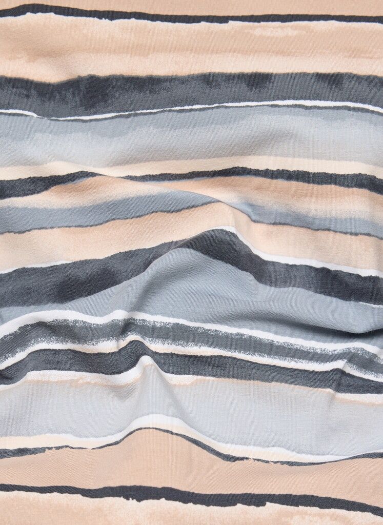 Dieses Shirt zeigt sich mit einem Aquarell-Streifenmuster in sanften Naturtönen und bietet ein angenehmes Tragegefühl. Der elastische Baumwollmix und das glatte Obermaterial sorgen für hohen Komfort. Mit 3/4-Ärmeln und Rundhalsausschnitt lässt es sich vielseitig im Alltag kombinieren. Aquarellartige Streifen in Naturtönen. 3/4-Ärmel und Rundhalsausschnitt. Glattes Obermaterial. Elastische Baumwollmischung. Pflegeleicht und formstabil.