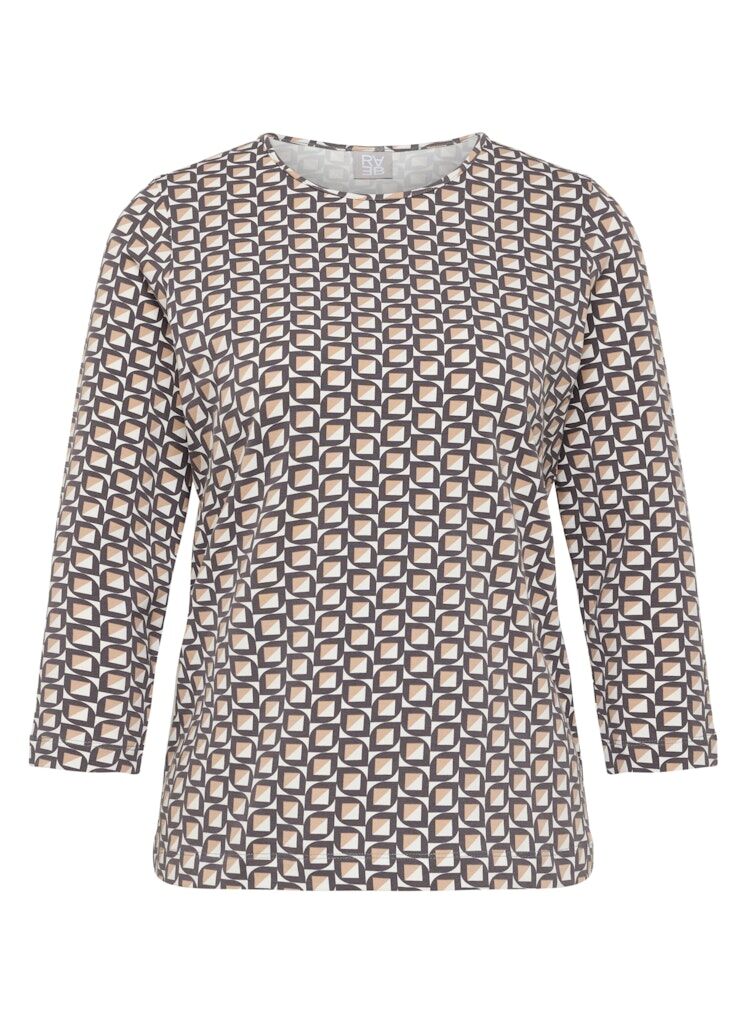 Dieses Shirt bringt durch das geometrische Muster Abwechslung in den Alltag. Der Rundhalsausschnitt und die 3/4-langen Ärmel sorgen für eine zeitlose Silhouette. Dank des elastischen Materials trägt sich das Modell angenehm und bleibt formstabil _ ideal zu schlichten Hosen, Jeans oder Röcken. Bequeme 3/4-Ärmel. Klassischer Rundhalsausschnitt. Elastisches Material für optimalen Sitz. Pflegeleicht und formstabil. Vielseitige Kombinationsmöglichkeiten.