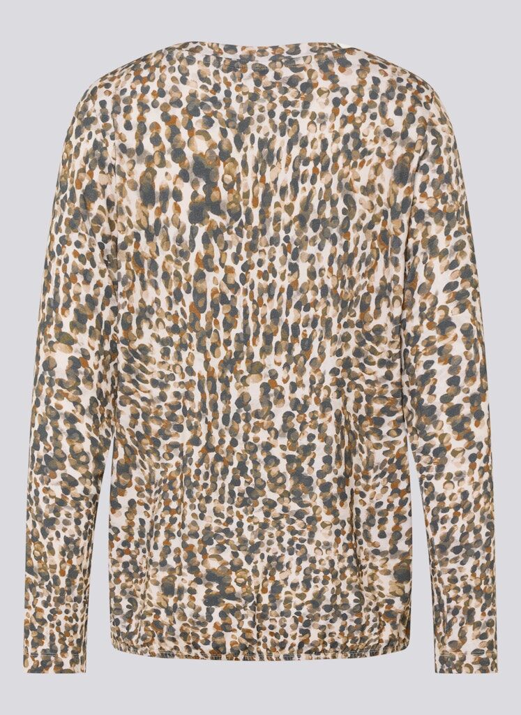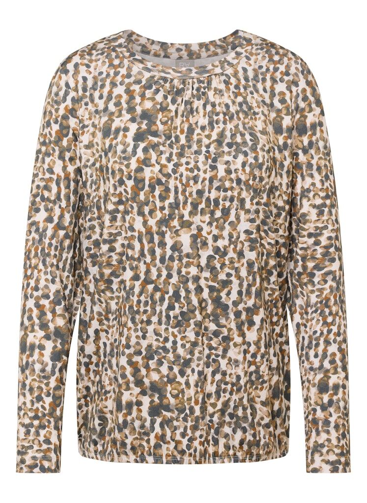 Ein bequemes Shirt mit stilvollem Muster für Alltag und Freizeit. Das Oberteil aus elastischem Viskosemix überzeugt durch seinen grafischen Print, den klassischen Rundhalsausschnitt und die feinen Fältchen am Halsausschnitt. Der figurumspielende Schnitt sorgt für angenehmen Tragekomfort. Softer Jersey mit Viskose. Elastisch und bequem Dezente Falten vorn. Rundhalsausschnitt. Grafisches Allover-Design. Pflegeleichtes Material.