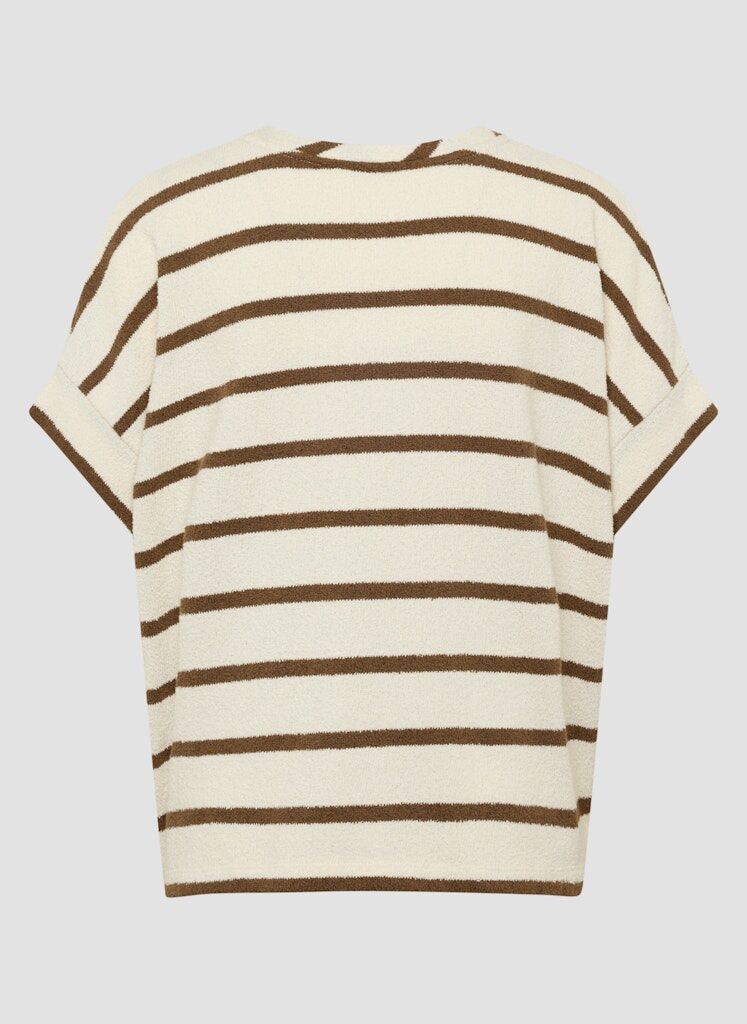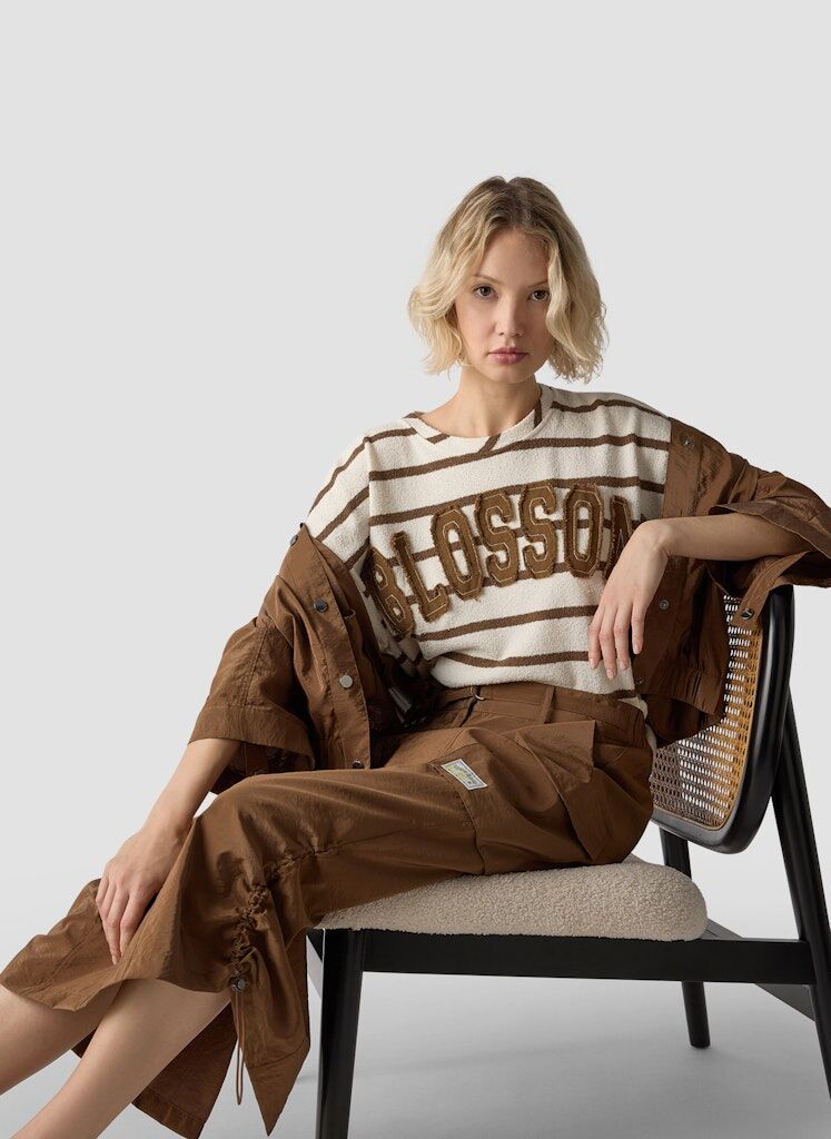 Dieses Kurzarm-Sweatshirt verbindet sportiven Stil mit angenehmem Tragekomfort. Das Streifenmuster wird durch eine markante, aufgesetzte Schriftapplikation auf der Vorderseite ergänzt, die dem Modell eine lässige Note verleiht. Der weiche Materialmix aus Baumwolle, Modal und Polyester fühlt sich angenehm auf der Haut an und sorgt für Formstabilität sowie Pflegeleichtigkeit. Die lockere Passform mit überschnittenen Schultern macht das Oberteil zu einem vielseitigen Begleiter für entspannte Alltagslooks. Weicher Baumwoll-Modal-Mix. Aufgesetzte Schriftapplikation vorn. Lockerer Schnitt mit Kurzarm. Angenehm leicht zu tragen. Pflegeleicht und formstabil.