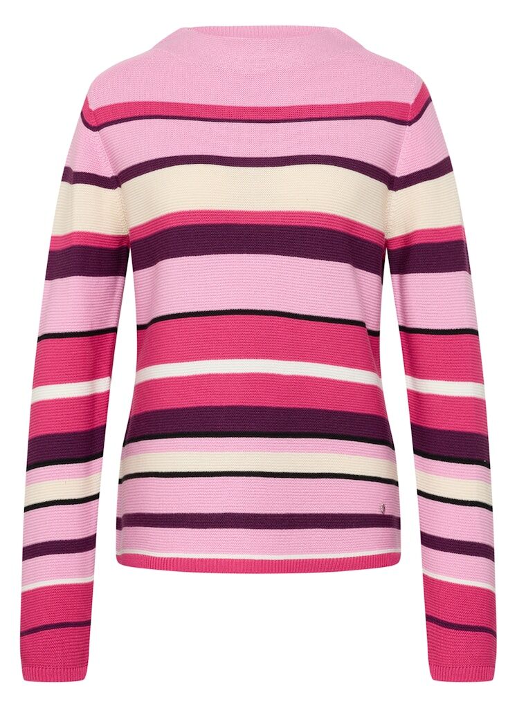 Dieser Pullover kombiniert klassischen Feinstrick mit einem modernen Streifendessin und feiner Struktur. Der kleine Stehkragen verleiht dem Design eine dezente Eleganz, während die weiche Materialmischung aus Baumwolle und Polyacryl für angenehmen Tragekomfort sorgt. Ideal zu kombinieren mit Jeans oder Stoffhosen _ ein vielseitiger Begleiter für die Übergangszeit. Kleiner Stehkragen. Weiche Feinstrickqualität. Gerader Schnitt. Strukturierte Streifenoptik. Angenehmes Tragegefühl durch Materialmix.