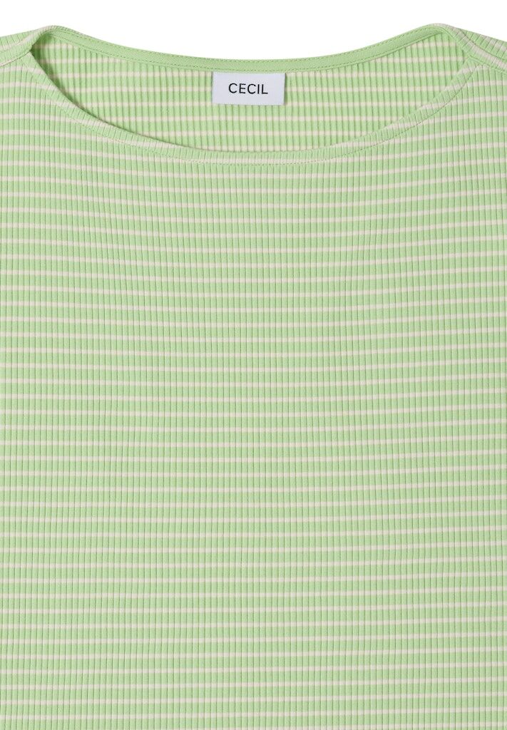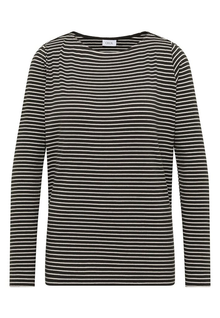 Im maritimen Look präsentiert sich dieses gestreifte Langarmshirt von CECIL für Damen. Die feine Rippstruktur schmeichelt der Figur, während der U-Boot-Ausschnitt und die langen Ärmel für eine feminine Note sorgen. Ein bequemes Shirt für deinen lässigen Alltag. Damenshirt Streifenmuster Figurschmeichelnde Rippstruktur Langarm U-Boot-Ausschnitt Material: 95% Baumwolle, 5% Elasthan