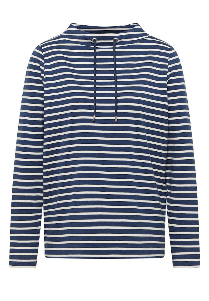 Sportiv und bequem: Dieses Shirt von CECIL für Damen punktet mit Streifenmuster, langen Ärmeln und einem modernen Funnel Neck mit Tunnelzug. Der angenehme Materialmix sorgt für ein weiches Tragegefühl. Ein unkomplizierter Begleiter für deine Casual-Outfits. Damenshirt Casual Funnel Neck Langarm Sportiv und vielseitig Material: 50% Baumwolle, 50% Modal