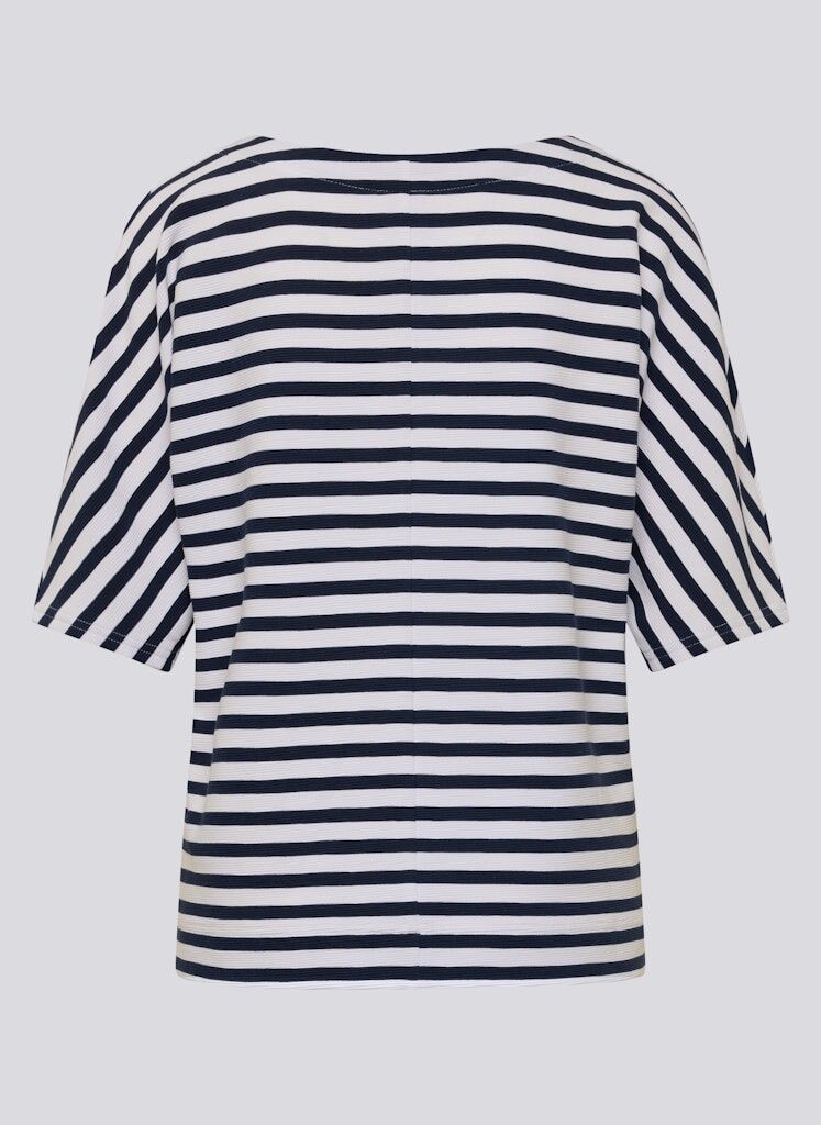Das markante Frontmotiv wird durch funkelnde Strasssteine wirkungsvoll hervorgehoben und setzt einen modischen Akzent. Das klassische Streifenmuster verleiht dem Shirt eine maritime Note, während die strukturierte Rippqualität für eine lebendige Oberfläche sorgt. Die lockere Form mit überschnittenen Schultern trägt sich angenehm und wirkt entspannt im Alltag. Baumwollmix mit Stretch. Streifenmuster in Rippoptik. Strassverziertes Frontmotiv. Halbarm mit überschnittener Schulter. Locker fallende Form.