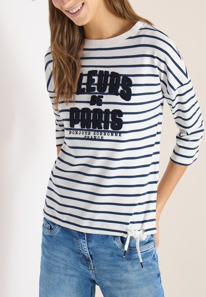 Dieses Streifen-Shirt von CECIL für Damen überzeugt mit lässigem, sportivem Stil. Der U-Boot-Ausschnitt und die 3/4-Ärmel sorgen für eine entspannte Optik. Der Tunnelzug am Saum setzt ein sportives Detail und ermöglicht eine individuelle Passform. Reine Baumwolle macht das Shirt angenehm zu tragen. Baumwollshirt Casual U-Boot-Ausschnitt 3/4-Arm Lässig und sportiv Material: 100% Baumwolle