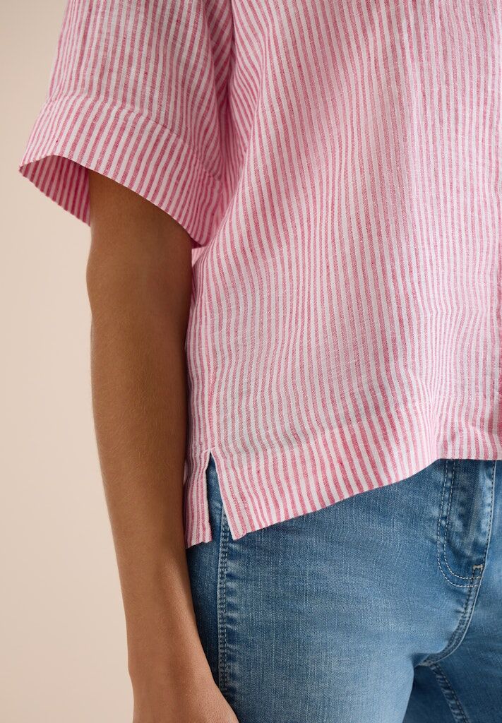 Die Leinen Hemdbluse von CECIL für Damen aus reinem Leinen überzeugt mit leichtem, sommerlichem Tragegefühl. Das Streifenmuster verleiht dem Look eine frische Note, während Hemdkragen und durchgehende Knopfleiste den klassischen Stil unterstreichen. Die kurzen Ärmel sorgen für angenehme Leichtigkeit. Ideal für dich, wenn du eine luftige Bluse für warme Tage suchst. Bluse aus reinem Leinen Casual Hemdkragen Kurzarm Streifenmuster Material: 100% Leinen