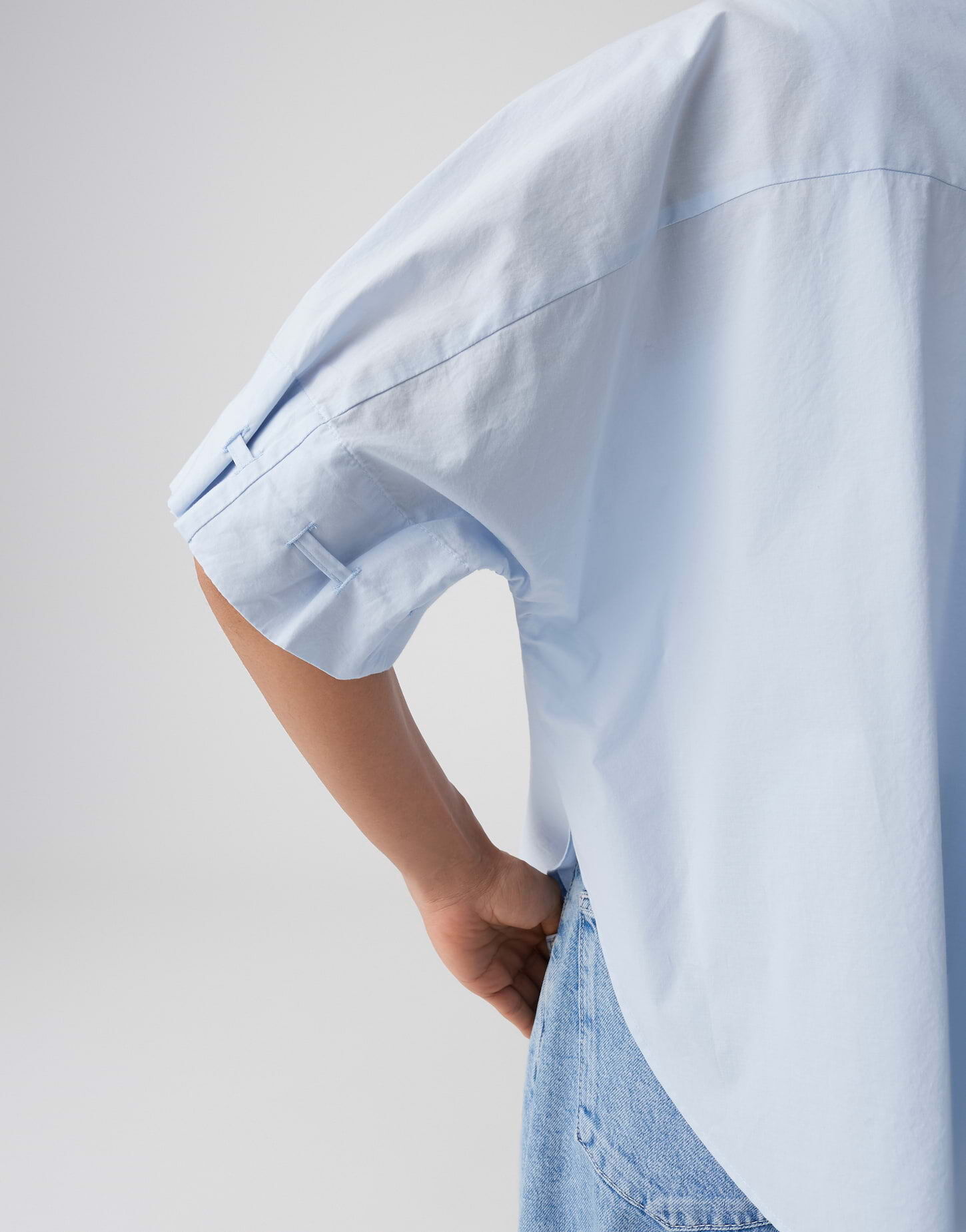 Reduzierte Hemdblusenlinie trifft auf versteckte Feminität, denn am Ärmelsaum lässt sich die Silhouette von FINOA über ein besonderes Tunnelzug Detail leicht in Form bringen. Die leichte Baumwollpopeline wirkt kühl auf der Haut, knittert weniger und macht den Look sofort citytauglich, selbst an warmen Tagen.