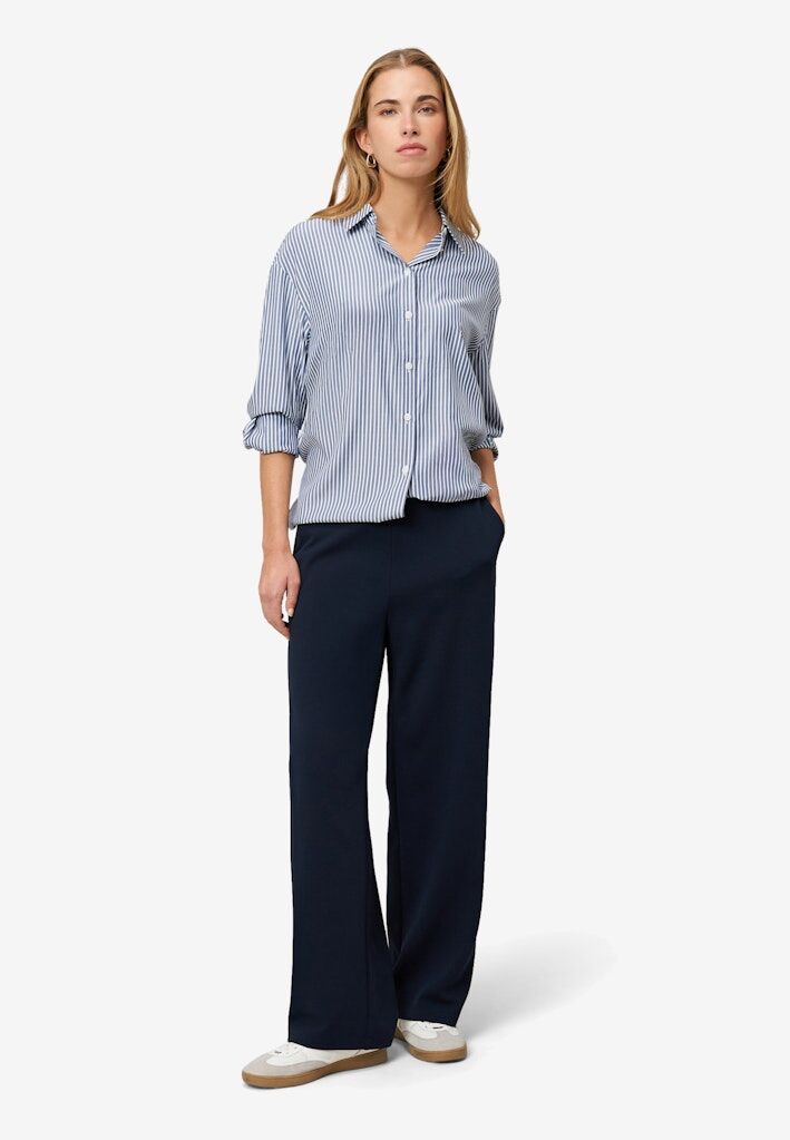 Auf der Suche nach etwas Besonderem? Diese Bluse der Marke zero ist ein absolutes Highlight für jedes Outfit.. Die Zero Bluse in Blue/White überzeugt mit klassischem Streifenmuster und moderner Lässigkeit. Der lockere Schnitt mit überschnittener Schulter sorgt für einen entspannten Look, der sich sowohl im Büro als auch in der Freizeit hervorragend stylen lässt. Die Bluse kombiniert klassische Elemente wie Hemdkragen und Manschetten mit einem zeitgemäßen Oversized-Twist - ein Must-have für stilbewusste Frauen.
