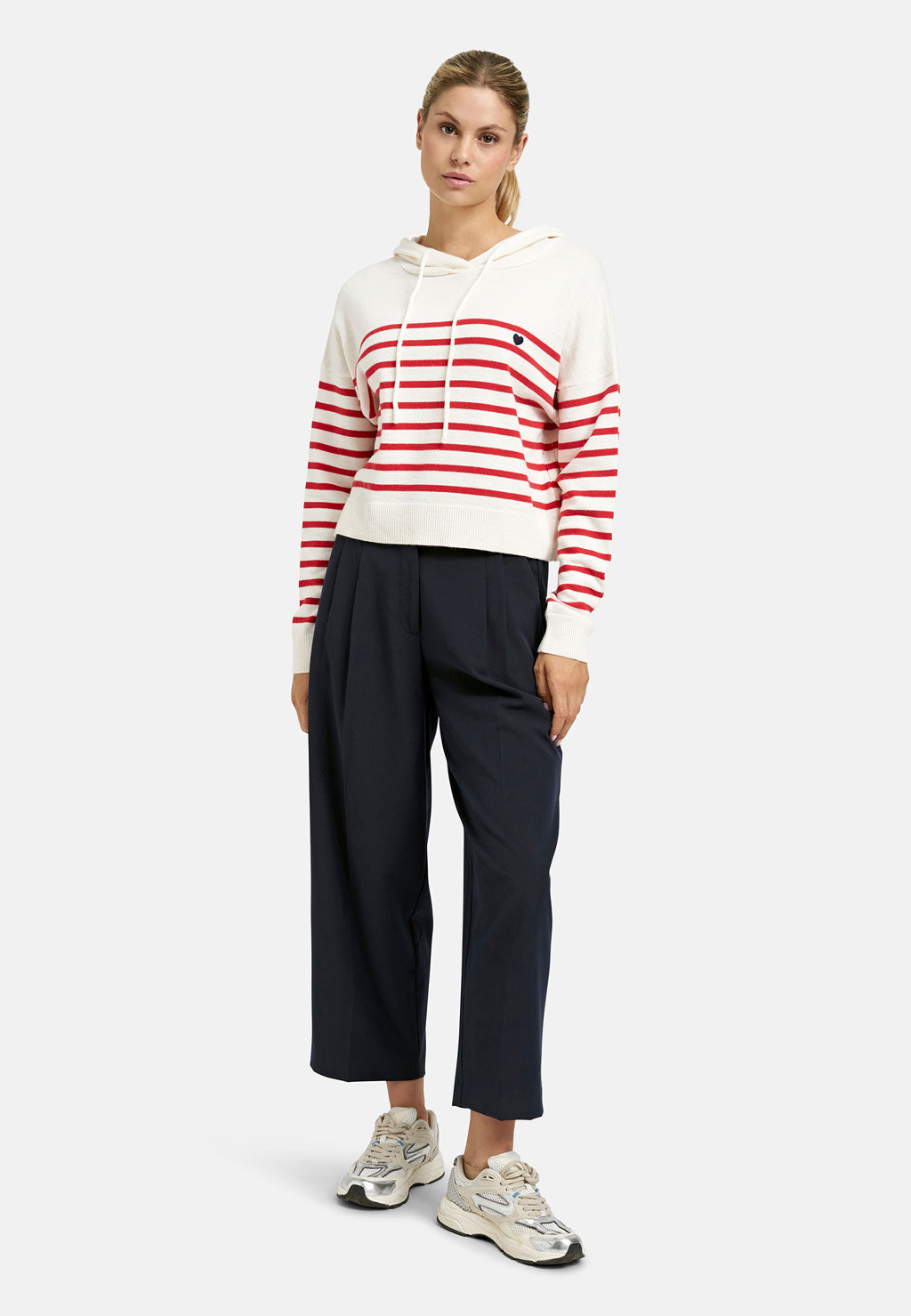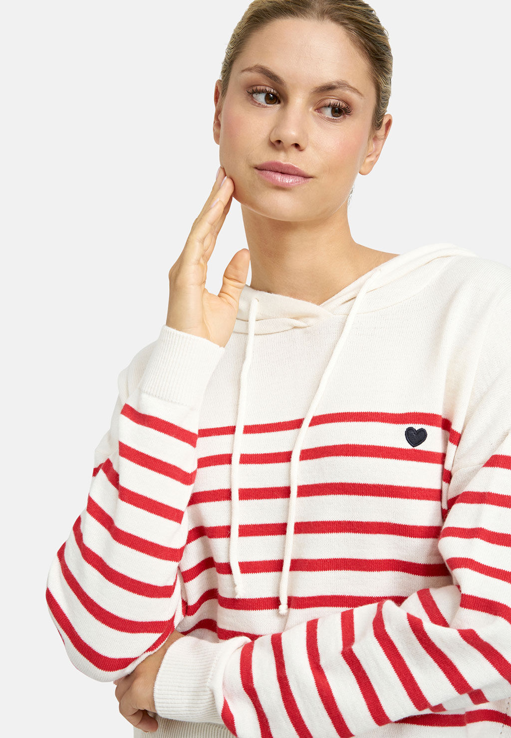 Der lässige Hoodie von Smith & Soul vereint sportiven Komfort mit maritimem Charme. In einem harmonischen Farbspiel aus Creme und Rot gestaltet, setzt das gestreifte Design modische Akzente und sorgt für einen frischen Look. Die weite Passform unterstreicht den entspannten Stil, während die Kapuze mit Tunnelzug zusätzlichen Komfort bietet. Ein kleines Herz-Detail auf Brusthöhe verleiht dem Hoodie eine liebevolle Note. Dank der weichen Strickqualität ist er angenehm zu tragen und perfekt für gemütliche Freizeit-Outfits mit Stil.