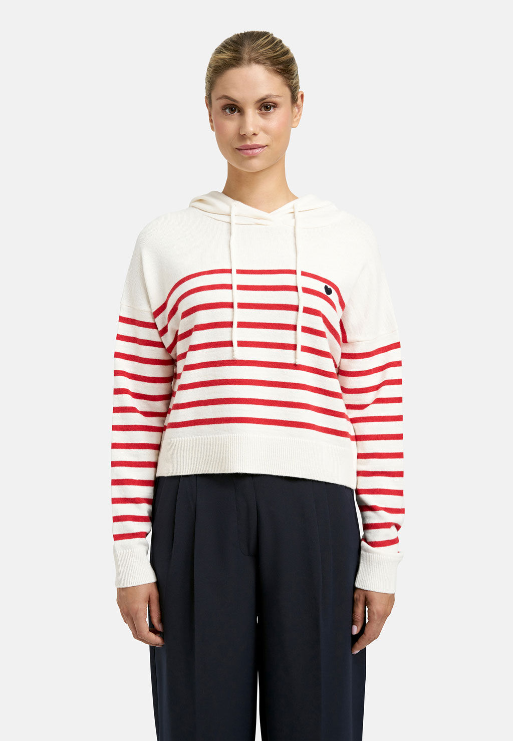 - Details: Kapuze mit Tunnelzug, kleines Herz-Detail auf der Brust, Rippbündchen an Saum und Ärmeln