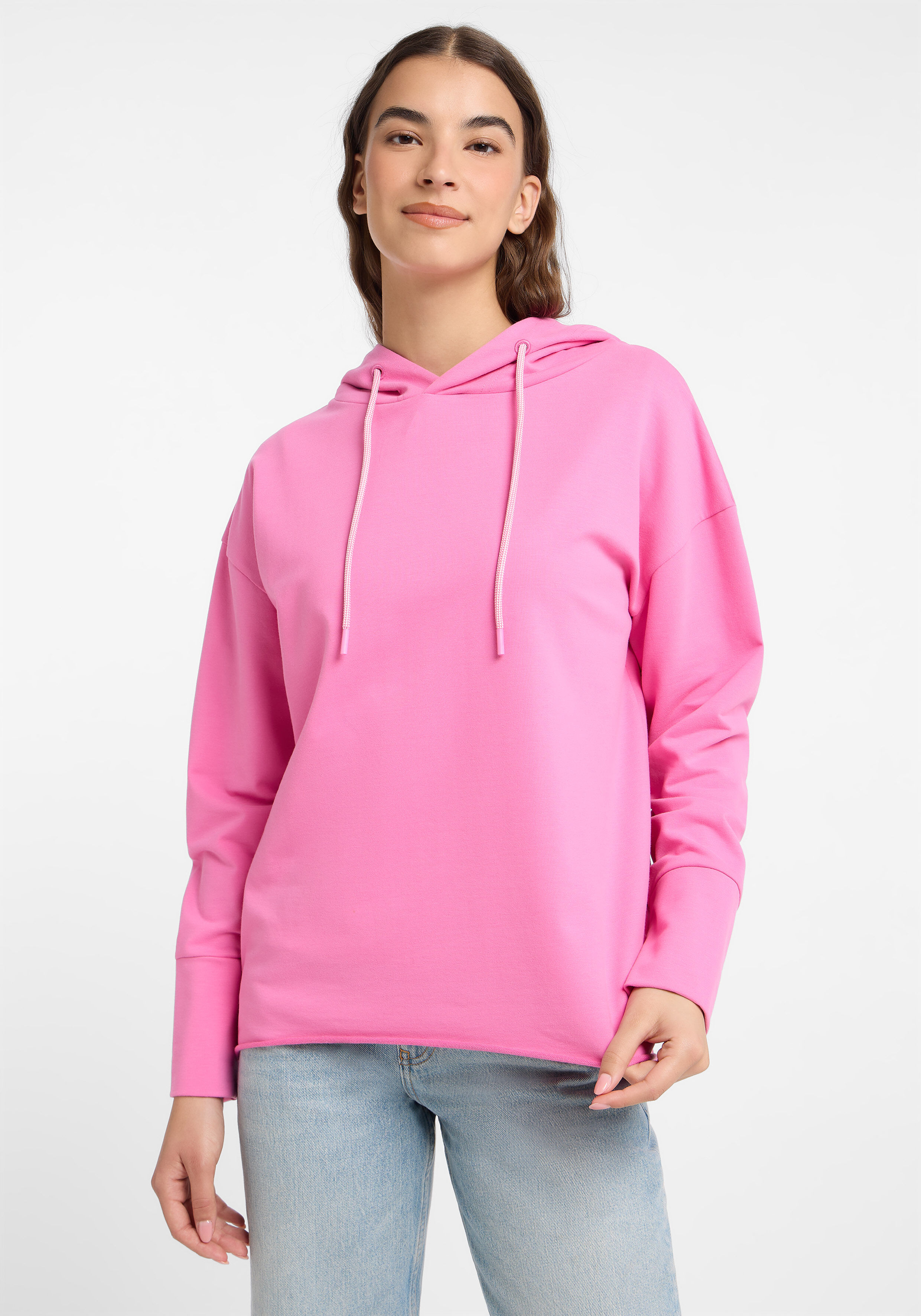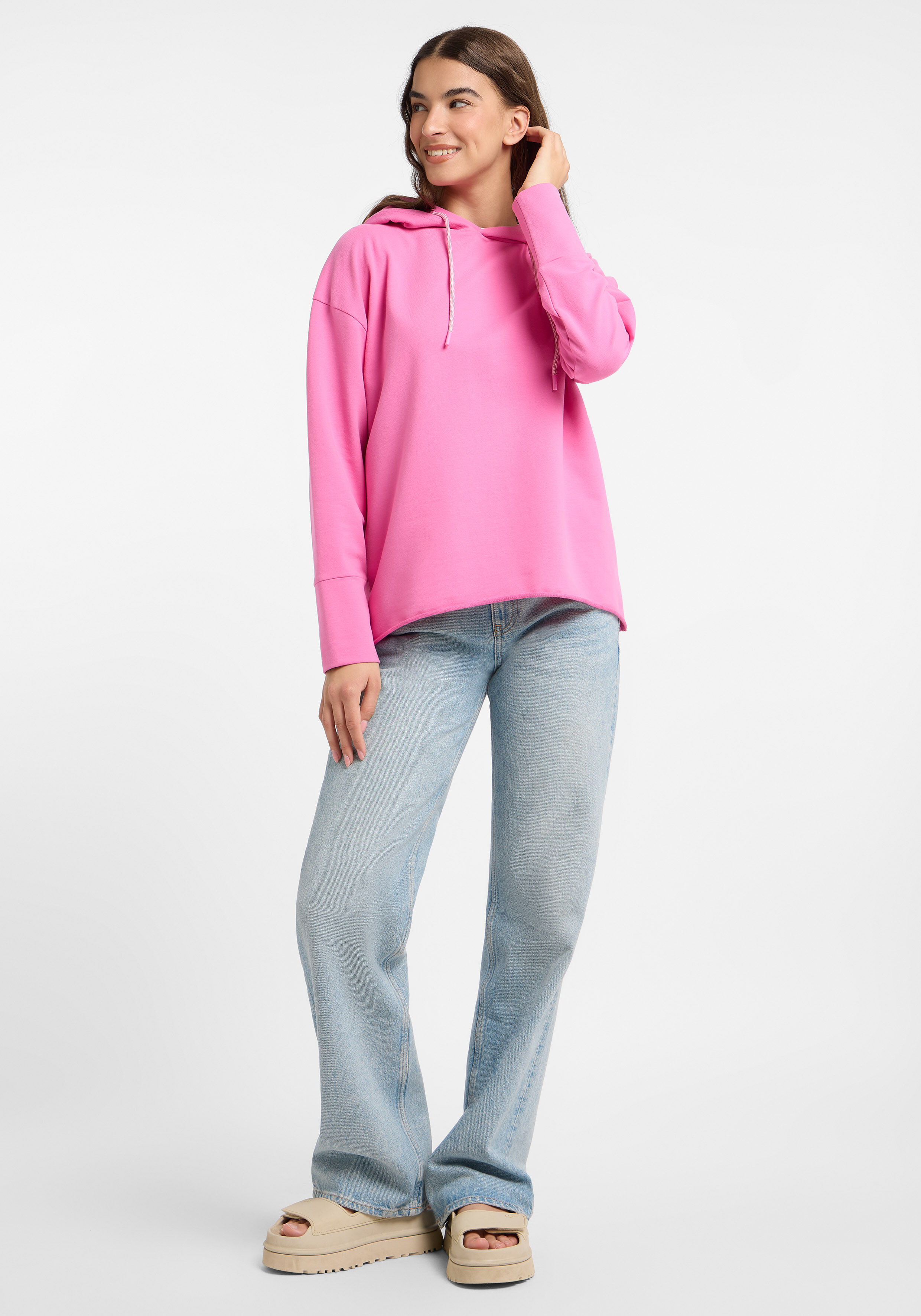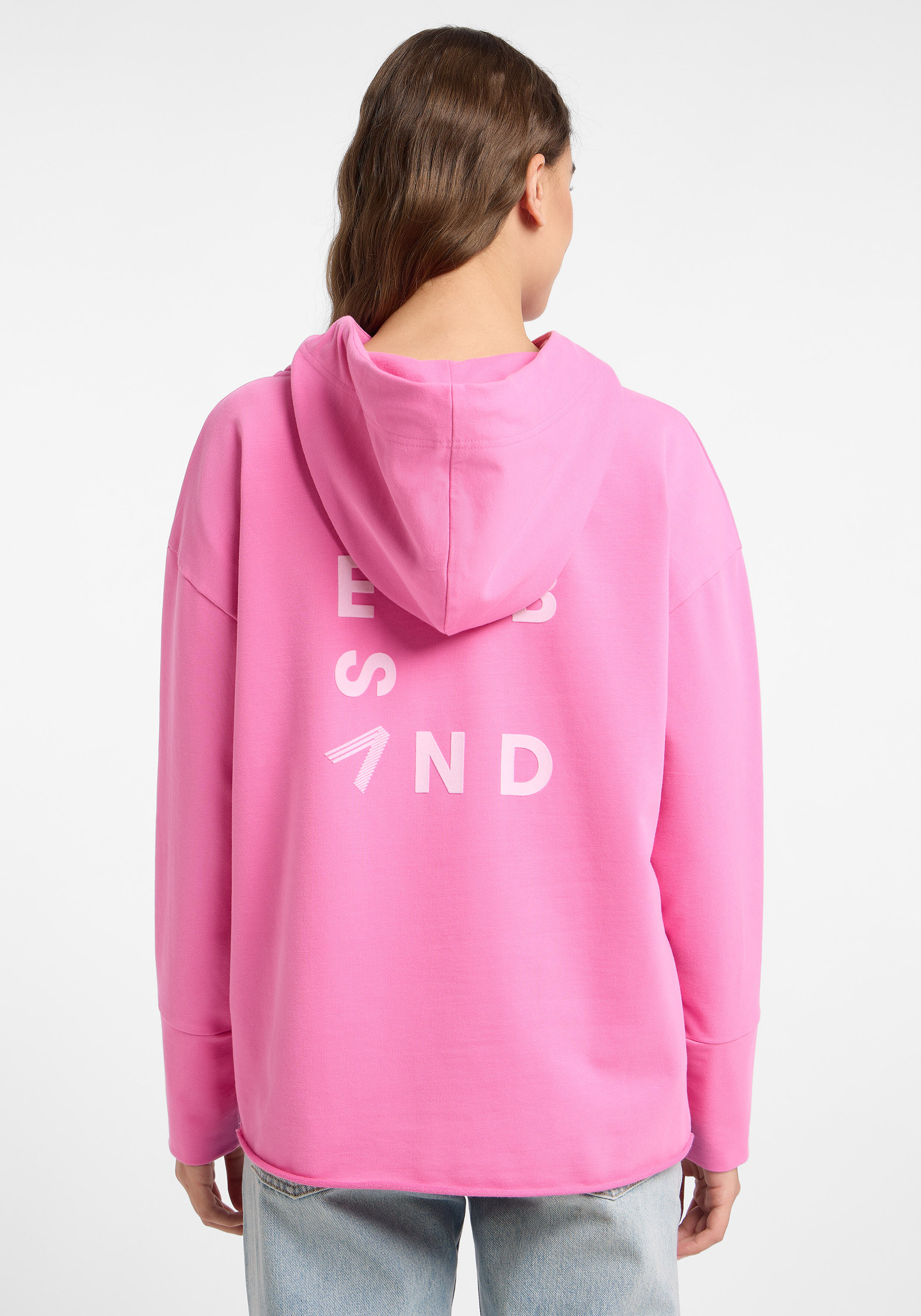 Der Hoodie "Danea" von Elbsand in der Farbe Magenta Sky vereint sportiven Stil mit lässigem Komfort. Der intensive Pinkton bringt Frische in deine Casual-Garderobe und lässt sich vielseitig kombinieren. Während die cleane Vorderseite für einen minimalistischen Look sorgt, setzt der markante ELBSAND-Backprint ein modisches Statement. Die lockere Passform mit überschnittenen Schultern und die Kapuze mit Kordelzug unterstreichen den entspannten Charakter - perfekt für gemütliche Tage oder stylische Streetwear-Outfits.