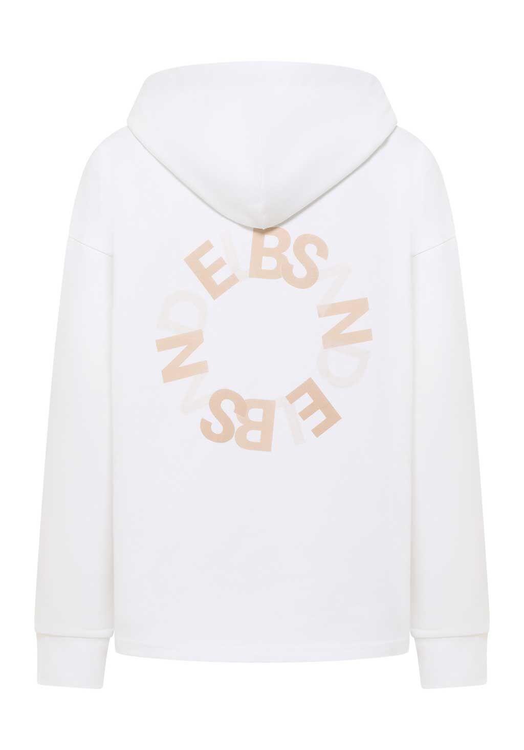 Der Hoodie "Ela" von ELBSAND ist der perfekte Begleiter für entspannte Tage und lässige Streetstyles. In einem soften weiß gehalten, überzeugt er mit seiner cleanen Optik und einem auffälligen Logoprint auf dem Rücken. Das weiche Sweatmaterial und die lockere Passform sorgen für ein rundum angenehmes Tragegefühl, während die Kapuze mit Kordelzug dem Look eine sportliche Note verleiht.