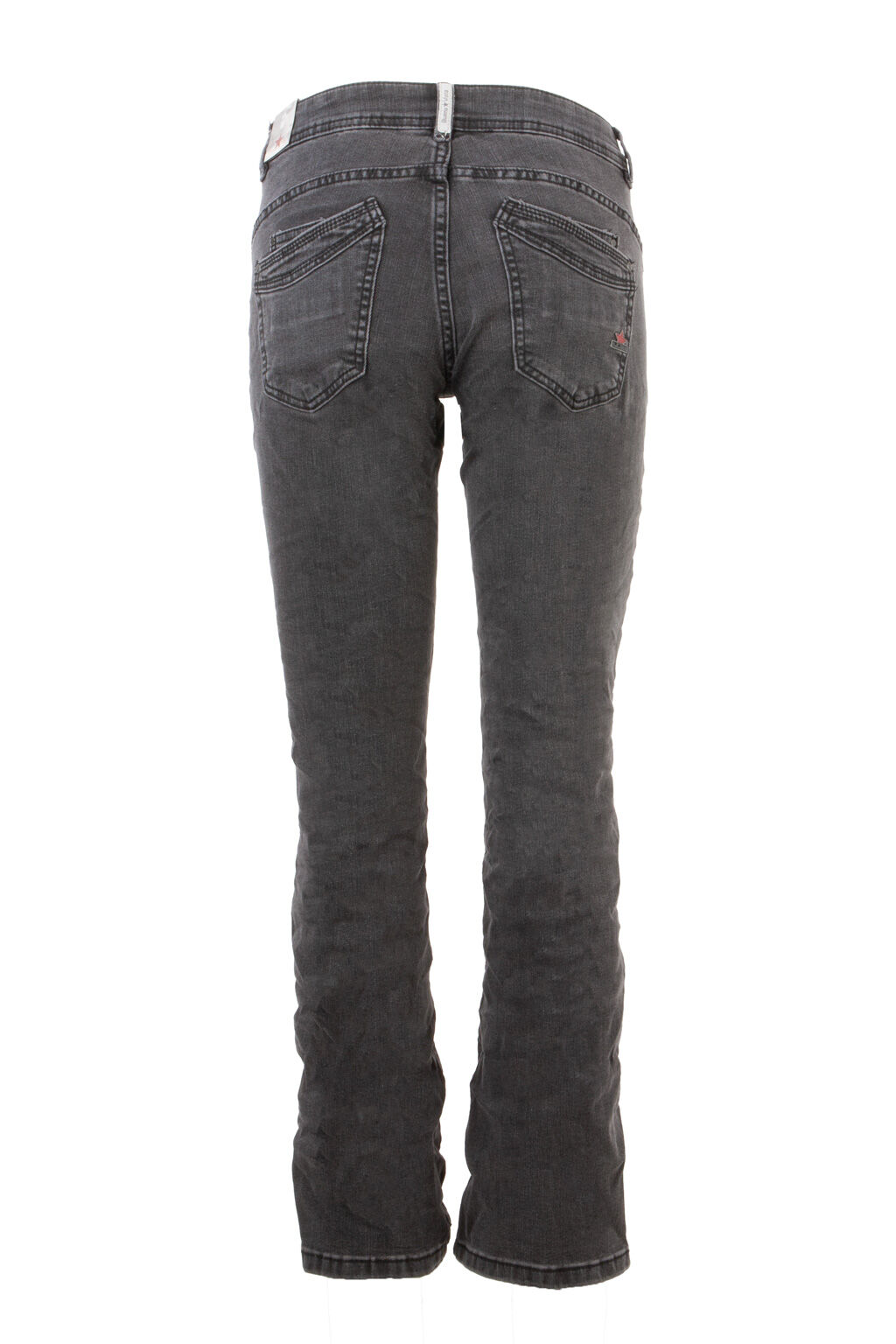 - Details: Bootcut-Schnitt, klassische 5-Pocket-Form, Reißverschluss mit Knopf, Gürtelschlaufen, dezente Used-Optik
