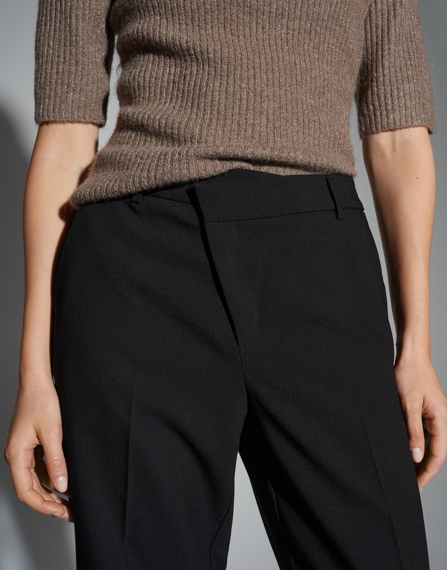 - Details: Fixierter Umschlag am Beinabschluss, Bügelfalten, verdeckter Frontverschluss, Gürtelschlaufen