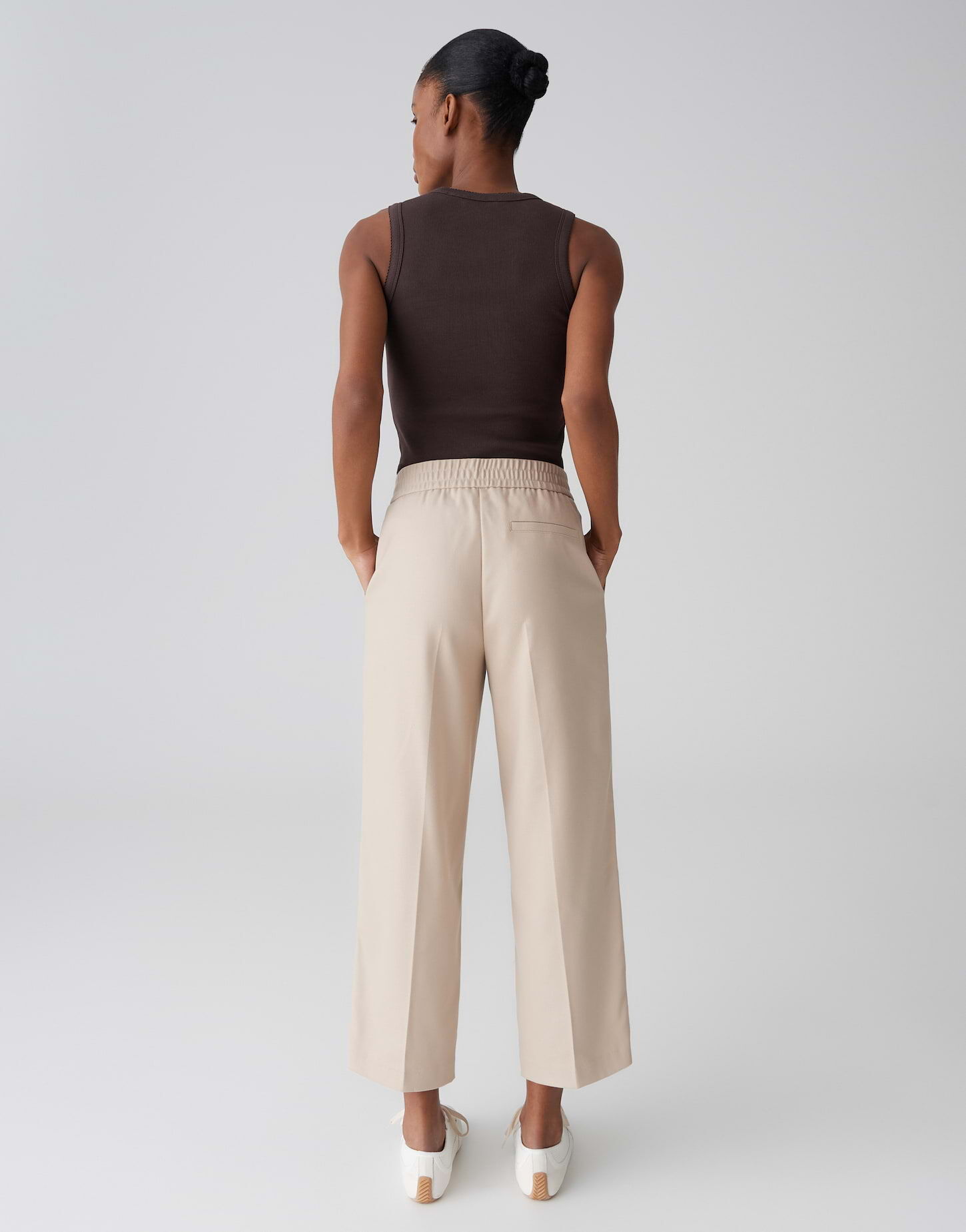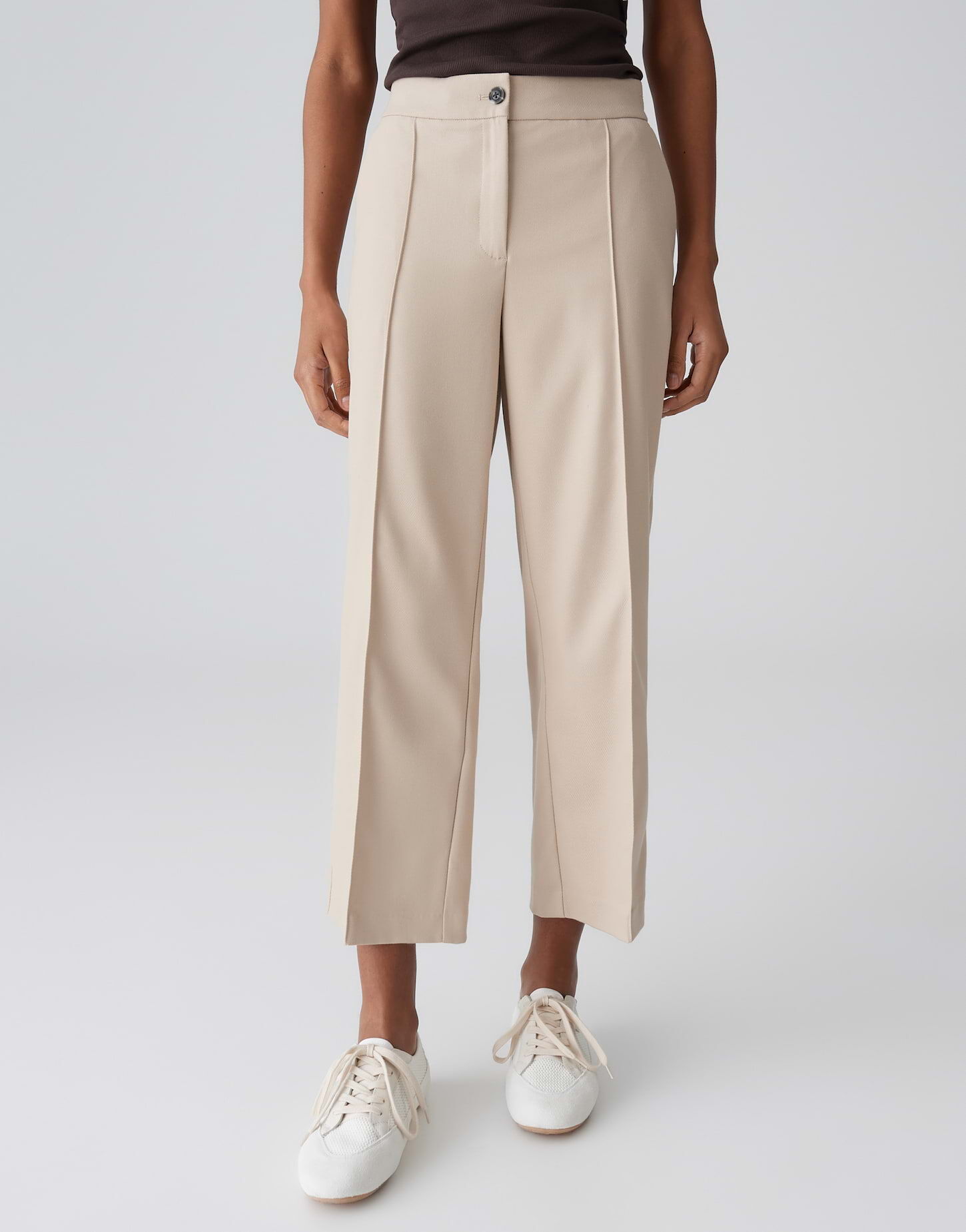 Der Mix aus dezentem Twill, gepflegtem Finish und elastischem Komfortbund sorgt für eine Hose, die Büroalltag und Freizeit stilvoll meistert. Das verkürzte Bein und die abgesteppten Biesen setzen modische Akzente und unterstreichen die elegante Ausstrahlung.
