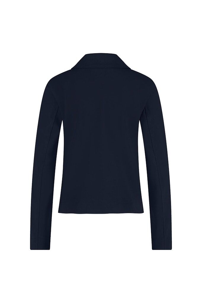 Diese Jacke von Studio Anneloes bringt minimalistischen Chic und Funktionalität perfekt zusammen. Das cleane Design in Dunkelblau wird durch große Knöpfe und zwei aufgesetzte Brusttaschen stilvoll akzentuiert. Dank des elastischen, pflegeleichten Materials bietet sie hohen Tragekomfort und ist ideal als Übergangsjacke oder als modisches Layering-Piece.