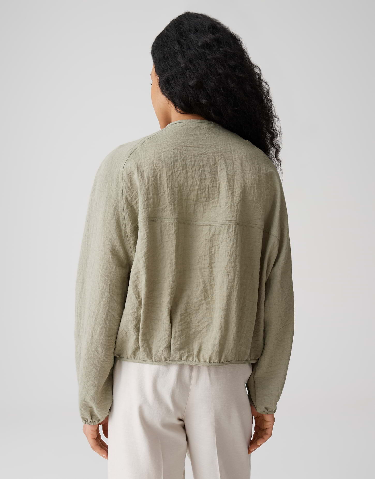 Ein Spiel aus Volumen und Semitransparenz prägt die weit geschnittene Blousonjacke JAROSA, die mit Ballonsaum und weit geschnittenen Ärmeln eine neue Dimension von femininer Coolness eröffnet. Feine Crepestruktur mit dezentem Glanz und die Anmutung von natürlicher Fliegerseide verleihen dem Look Leichtigkeit, die sich mühelos kombinieren lässt.