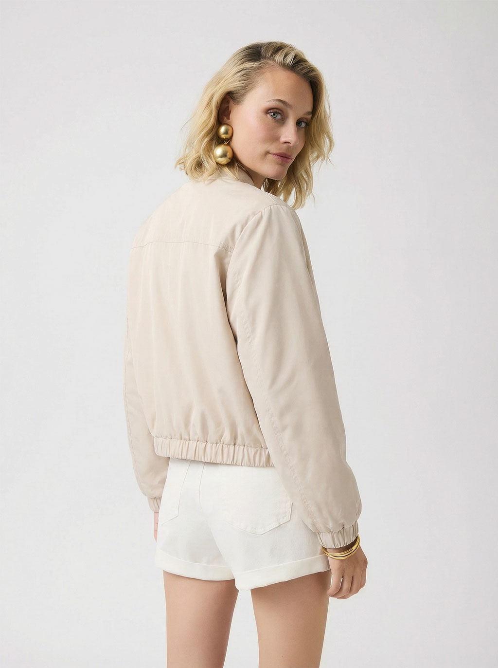 - Details: Durchgehender Reißverschluss, klassischer Hemdkragen, seitliche Eingrifftaschen, elastische Abschlüsse an Ärmeln und Saum