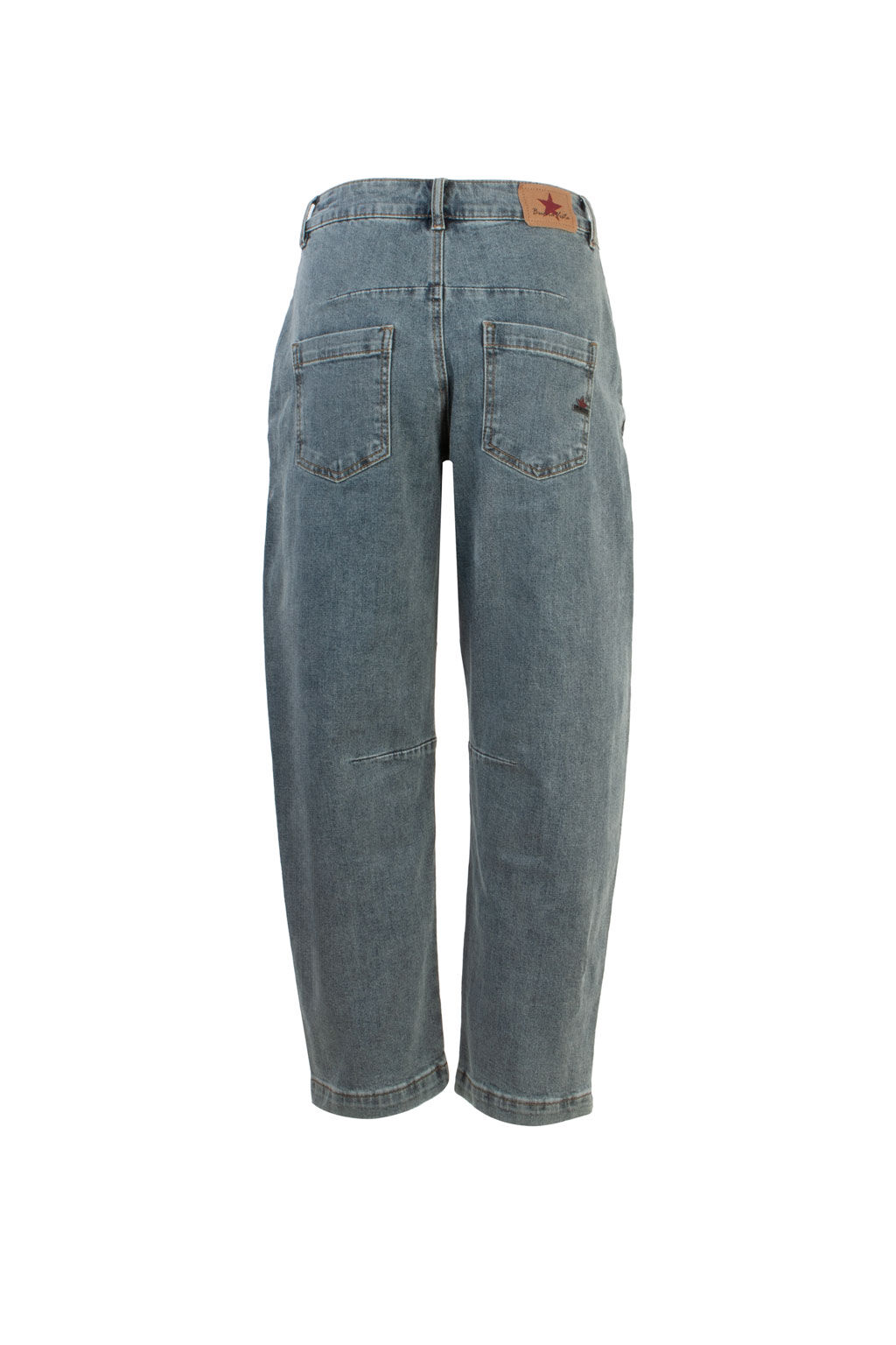 - Details: Knieabnäher, Gesäßtaschen, Label-Patch mit Stern hinten am Bund, dezente Waschung vorne und hinten