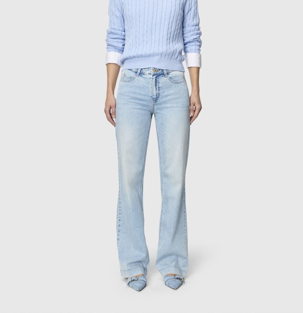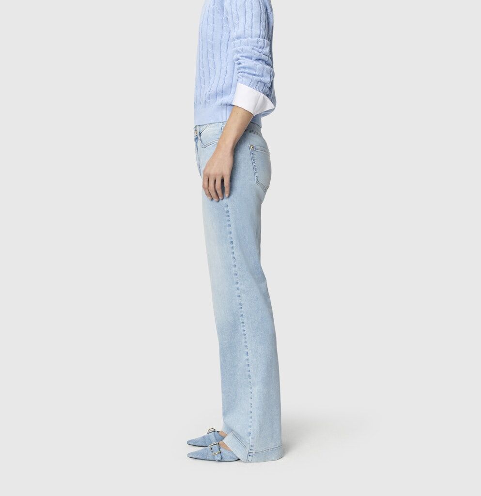 Wide Fit, Wide Leg, weites, gerades Bein, mittlere Leibhöhe, bequeme Taille, bequem an Gesäß und Oberschenkel, DREAM Wonder Light Denim, innovative, hochelastische Denim-Qualität mit Modal, sehr leicht im Tragegefühl, besonders weich im Griff, authentische Optik, figurformender Shaping-Effekt, hervorragendes Rücksprung-Verhalten, über Better Cotton gesourcte Baumwolle, Das Model ist 1,75m groß und trägt die MAC Hosengröße 34, Fußweite bei Größe 36: 52cm, Unsere Empfehlung: Das Modell eine Größe kleiner wählen!