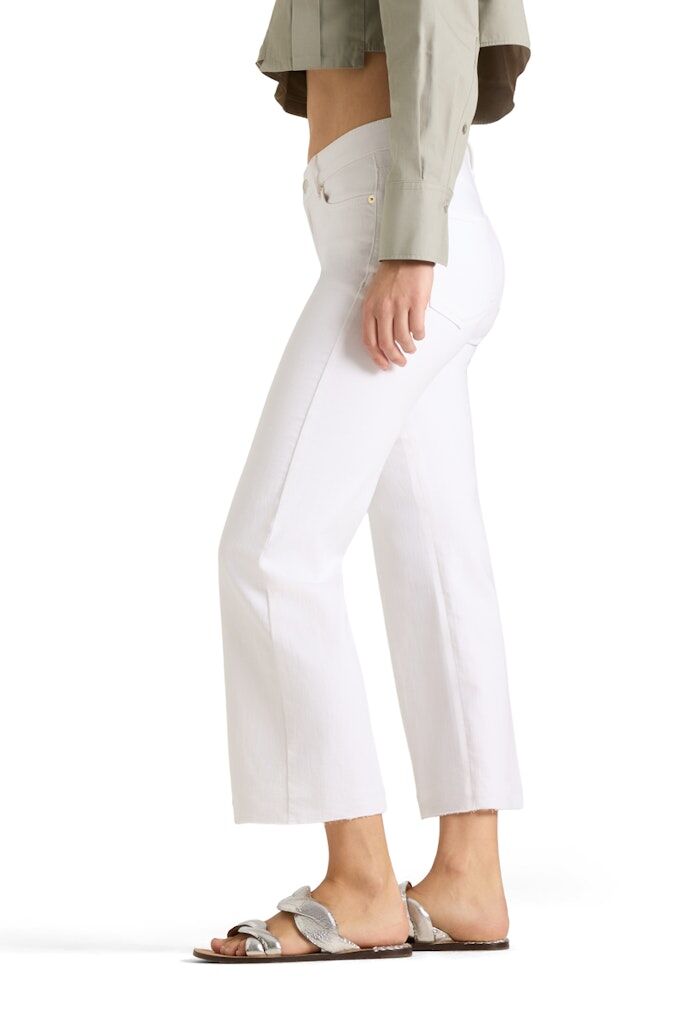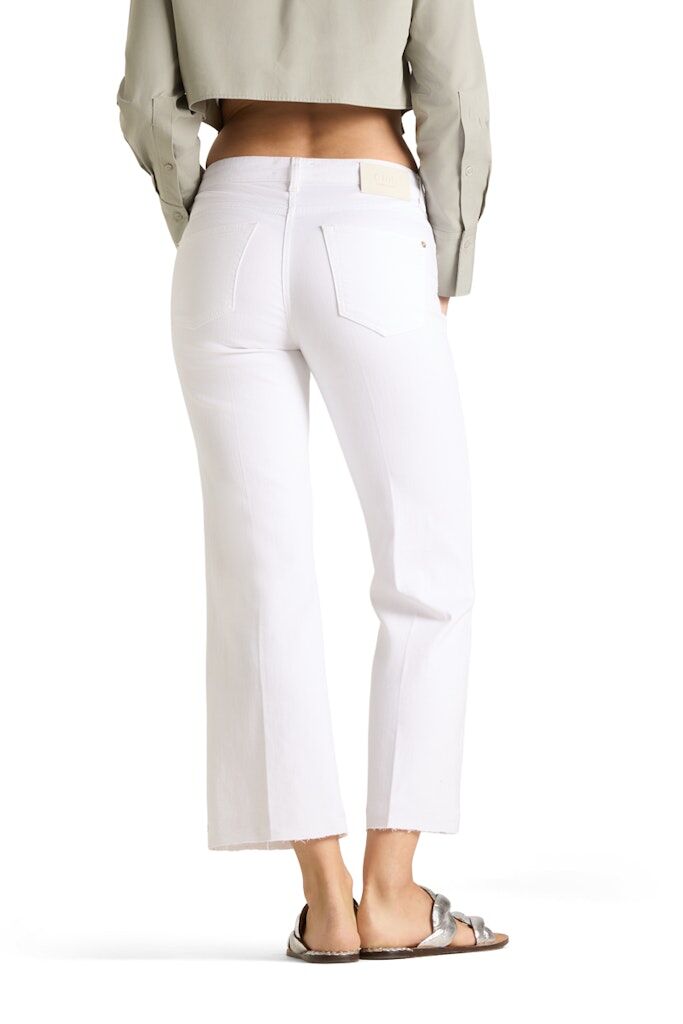 Die CAMBIO Jeans "Francesca" in classy white überzeugt mit einem modernen, femininen Look und stilvollen Details. Der leicht ausgestellte Schnitt sorgt für eine elegante Silhouette, während die fransigen Saumabschlüsse dem Design eine trendige Note verleihen. Dank des elastischen Materials bietet die Hose optimalen Tragekomfort und passt sich perfekt der Figur an, ein vielseitiges Essential für stilvolle Casual- und Sommer-Outfits.