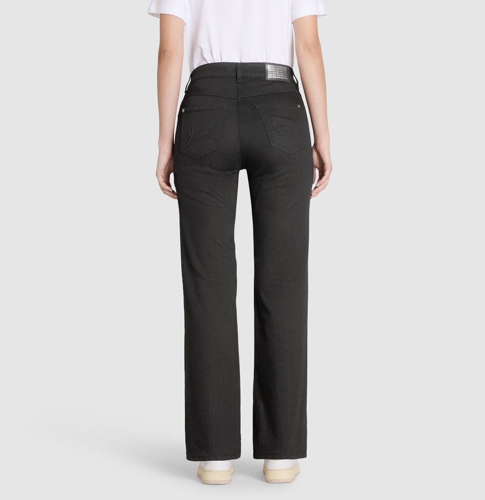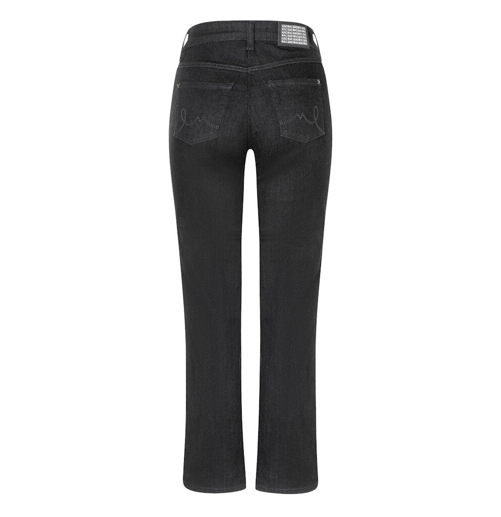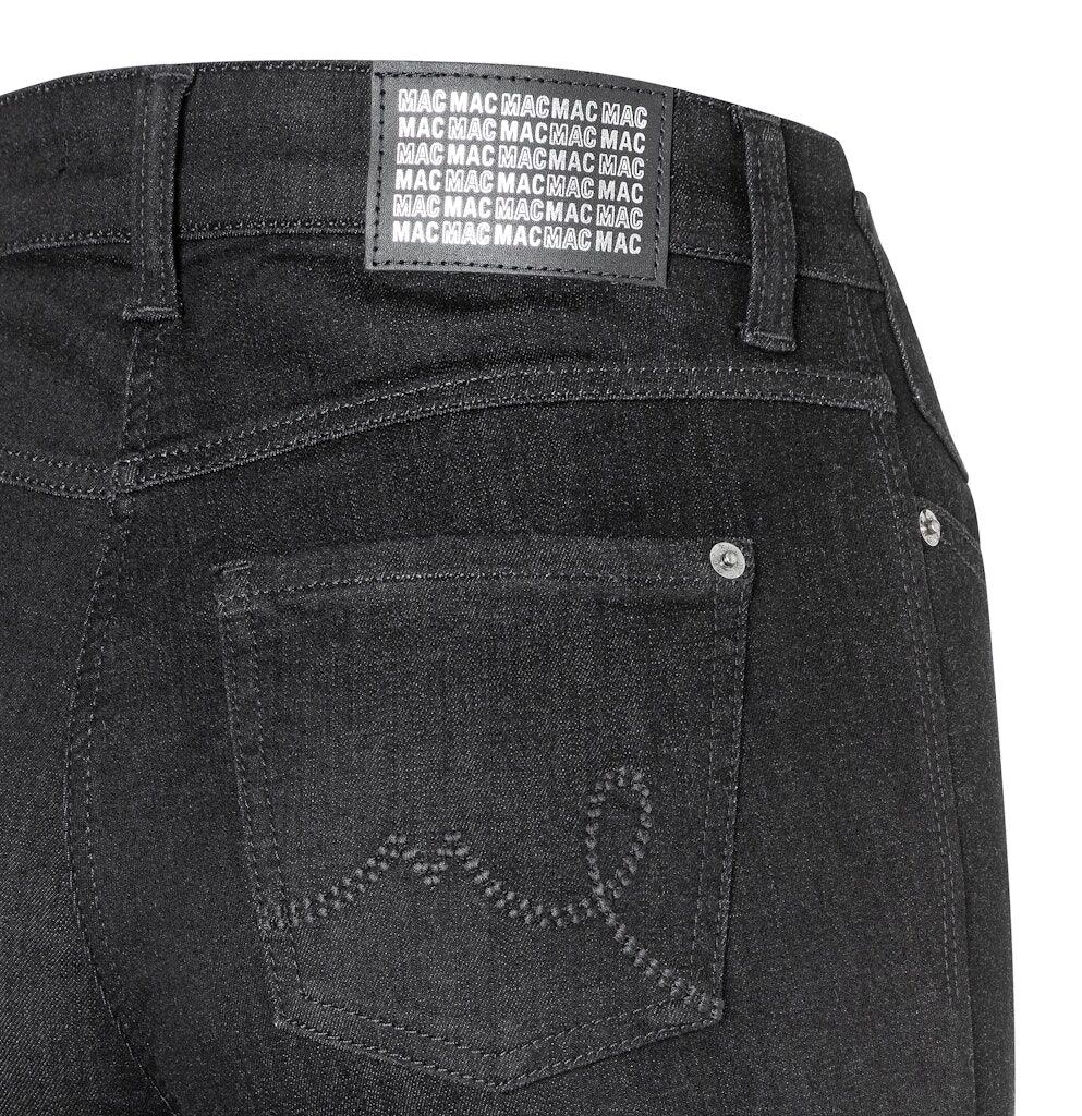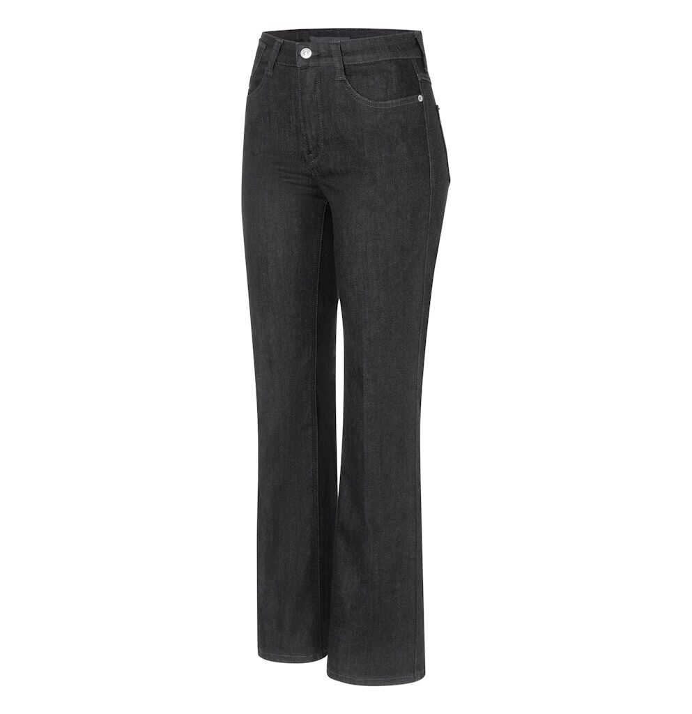 Flared Fit, Bootcut, gerades Bein, ausgestellter Saum, schlanke Silhouette, angezogene, erhöhte Leibhöhe, bequeme Taille, Five Pocket, modernes Naht-Detail an den Gesäßtaschen, Authentic Stretch Denim, sehr hochwertige, elastische Denim-Qualität, figurformender Effekt, hervorragendes Rücksprung-Verhalten, authentische Optik, angenehmer Griff, hoher Tragekomfort, Das Model ist 1,75m groß und trägt die MAC Hosengröße 36, Fußweite bei Größe 36: 46cm