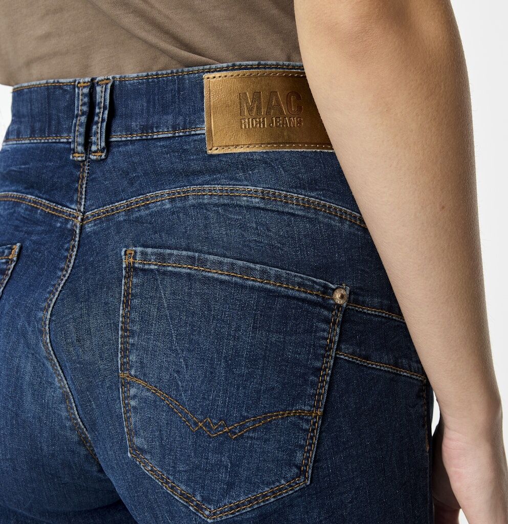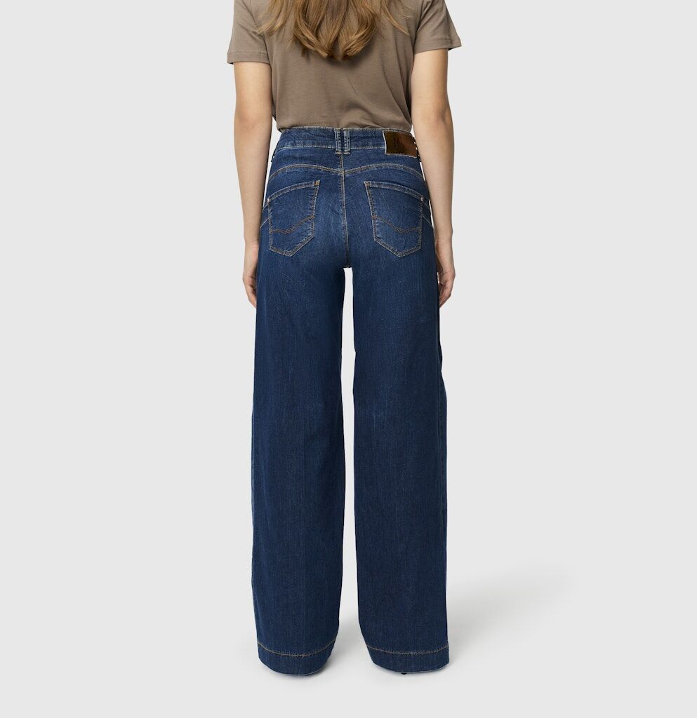 Wide Fit, Wide Leg, gerades, extraweites Bein, Palazzo-Modell, mittlere Leibhöhe, bequeme Taille, kontrastierende Nähte, Naht-Details an den Gesäßtaschen, Light Weight Denim, sehr leichte, sommerliche Denim-Qualität mit hohem Baumwoll-Anteil, weicher Griff, authentische Optik, hervorragende Passform, hoher Tragekomfort, temperaturausgleichende Eigenschaften, über Better Cotton gesourcte Baumwolle, Das Model ist 1,75m groß und trägt die MAC Hosengröße 36, Fußweite bei Größe 36: 56cm