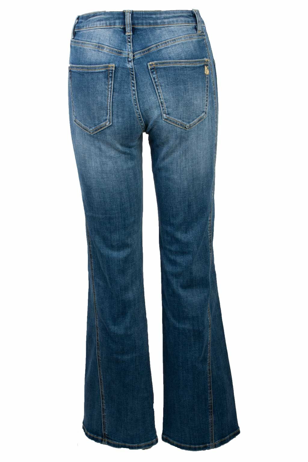 - Details: Five-Pocket-Style, Gürtelschlaufen, Knopf- und Reißverschluss, dezente Used-Optik, ausgestellter Beinverlauf im Retro-Style