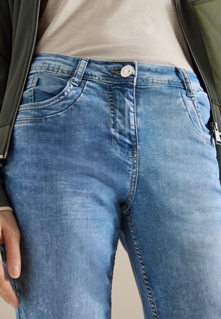 Diese Slim Leg Jeans im Style Scarlett von CECIL für Damen punktet mit frischer, hellblauer Waschung und zeitlosem Denim Design. Die Slim Legs verleihen der Jeans eine figurnahe Passform, für mehr Bequemlichkeit kannst du eine Nummer größer wählen. Dank Mid Waist und 5-Pocket-Style ist sie ein echter Allrounder. Der stretchige Baumwollmix sorgt für hohen Tragekomfort im Alltag. Denim Hose Casual Fit Slim Legs Mid Waist Klassischer Denim Look Material: 78% Baumwolle, 20% Polyester, 2% Elasthan
